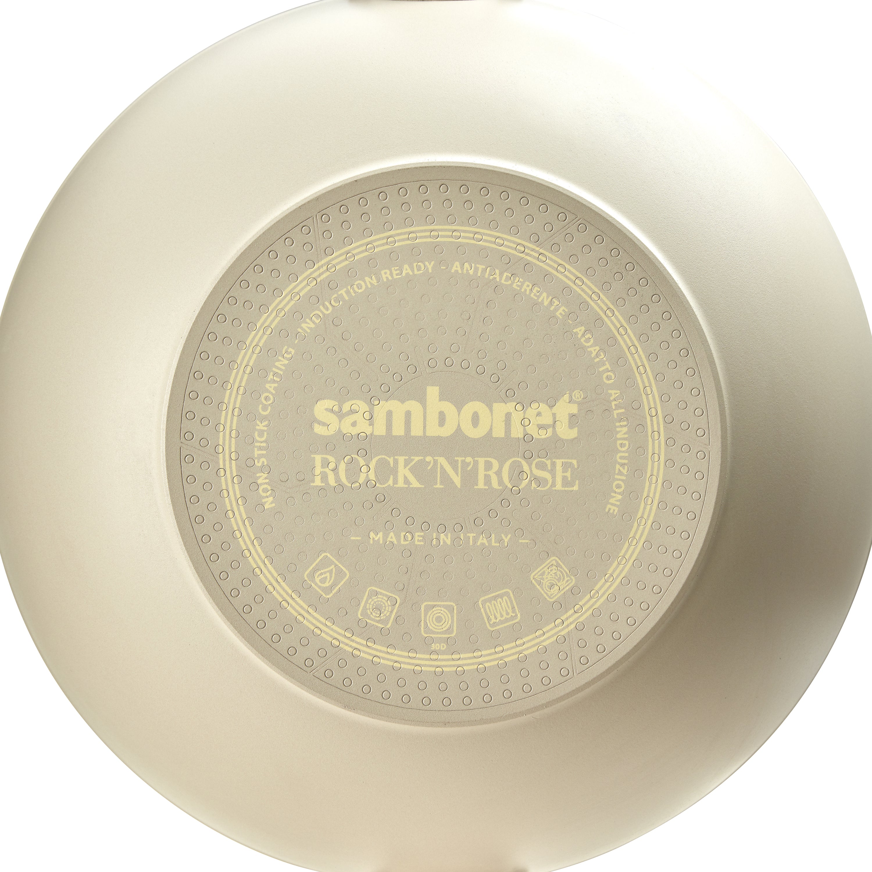 De Sambonet pannen zijn gemaakt van gegoten aluminium en hebben een krasbestendige mineralen antibaanbaklaag die vrij is van nikkel, zware metalen en PFOA. De pannen zijn opgebouwd uit vijf lagen: