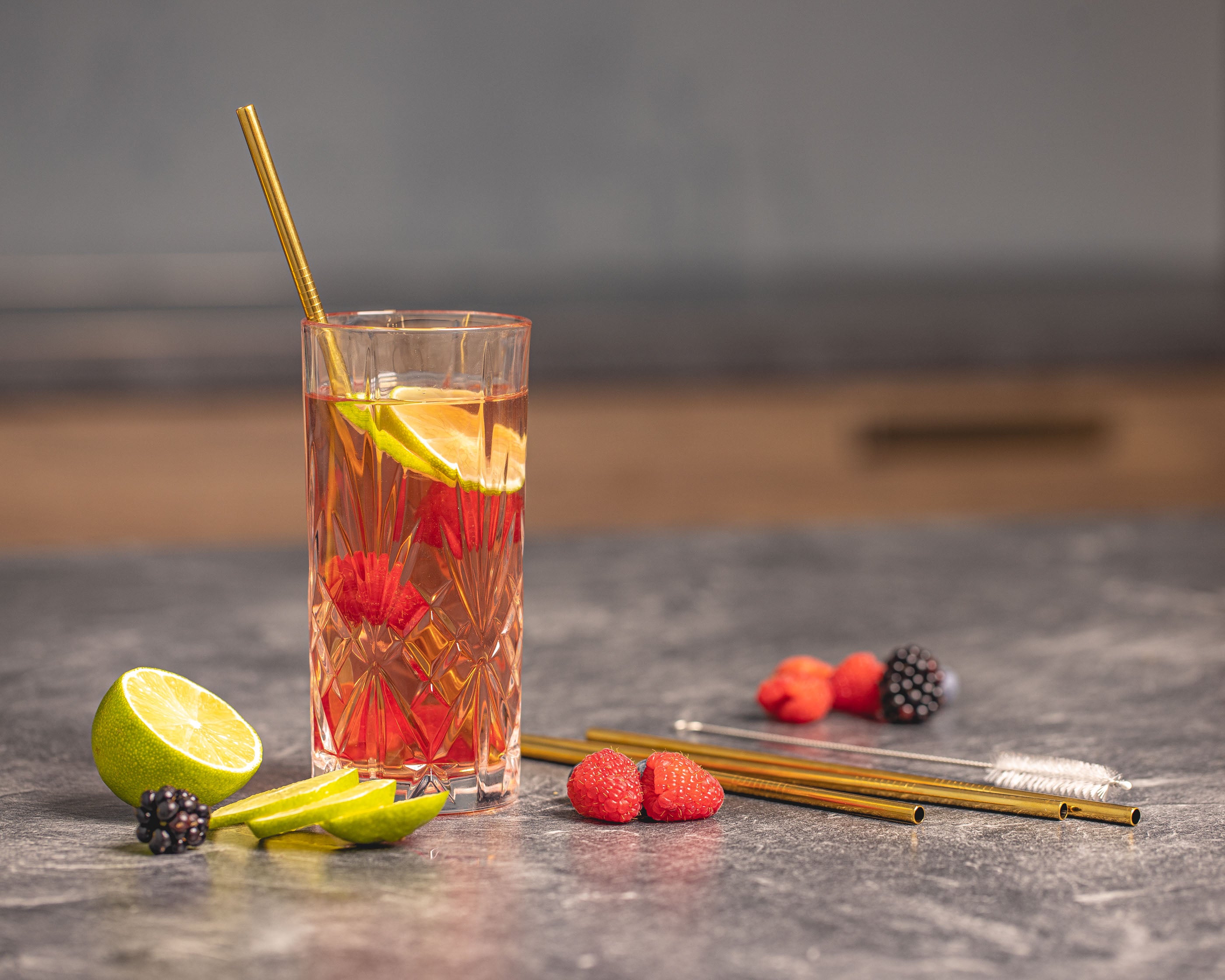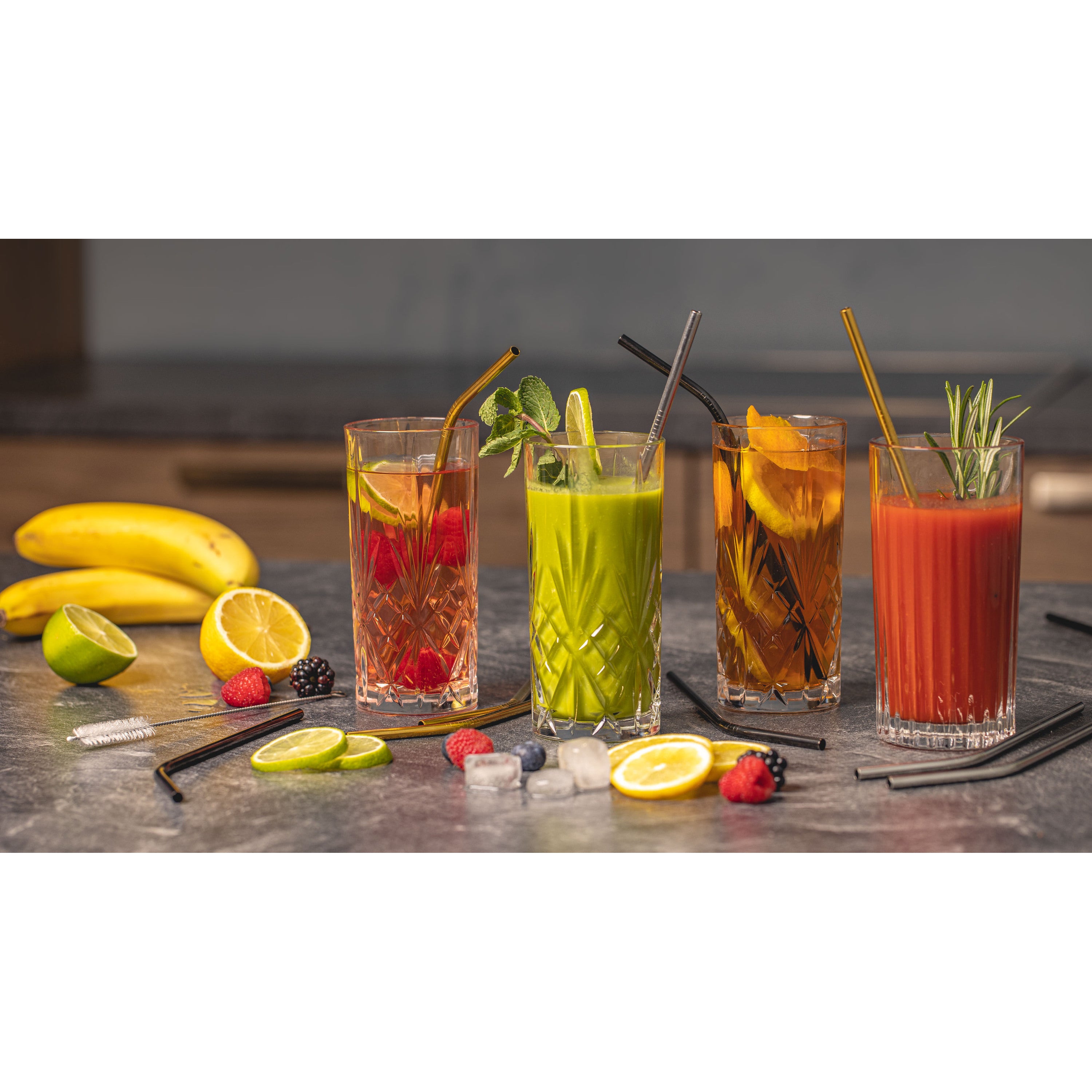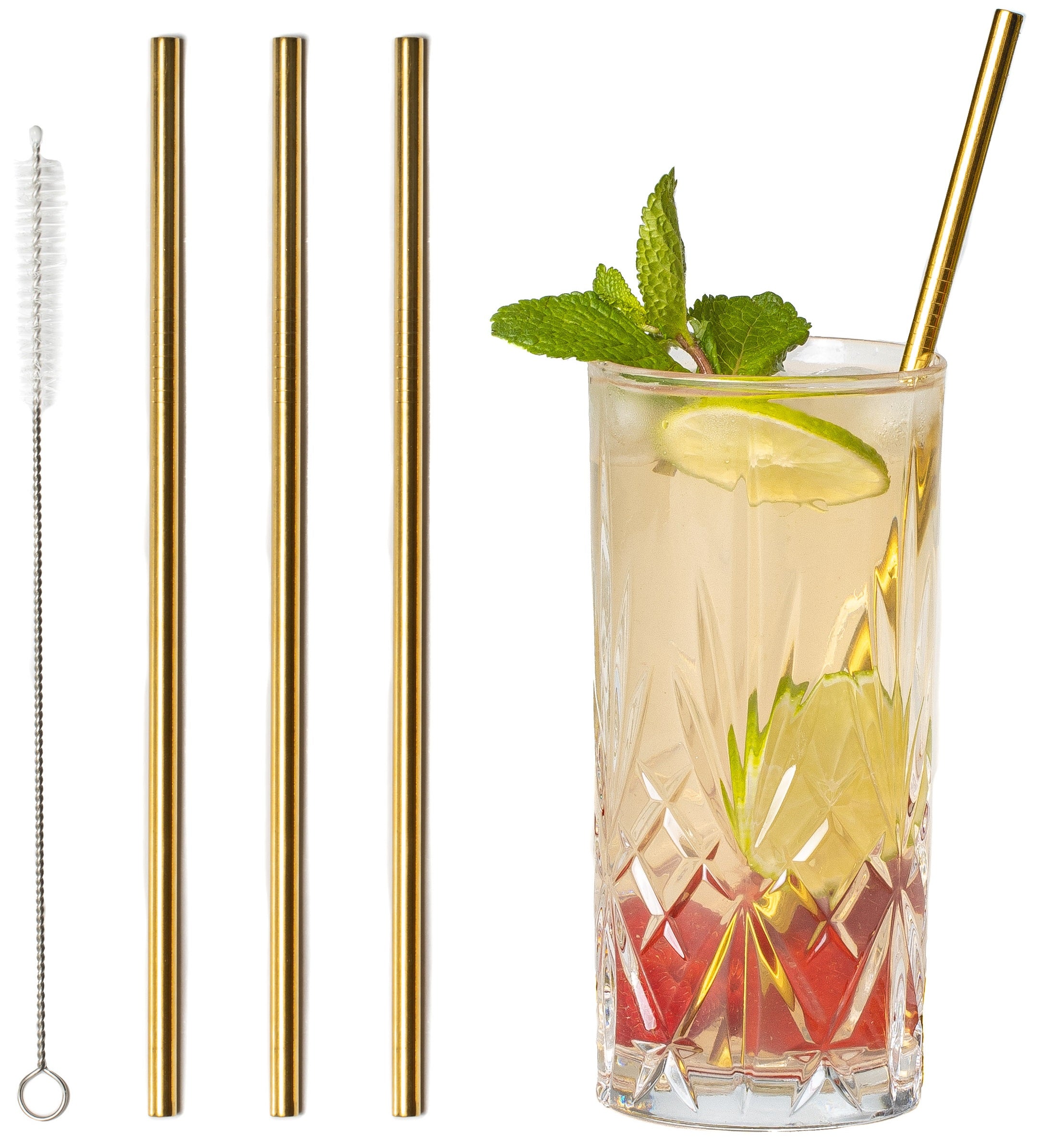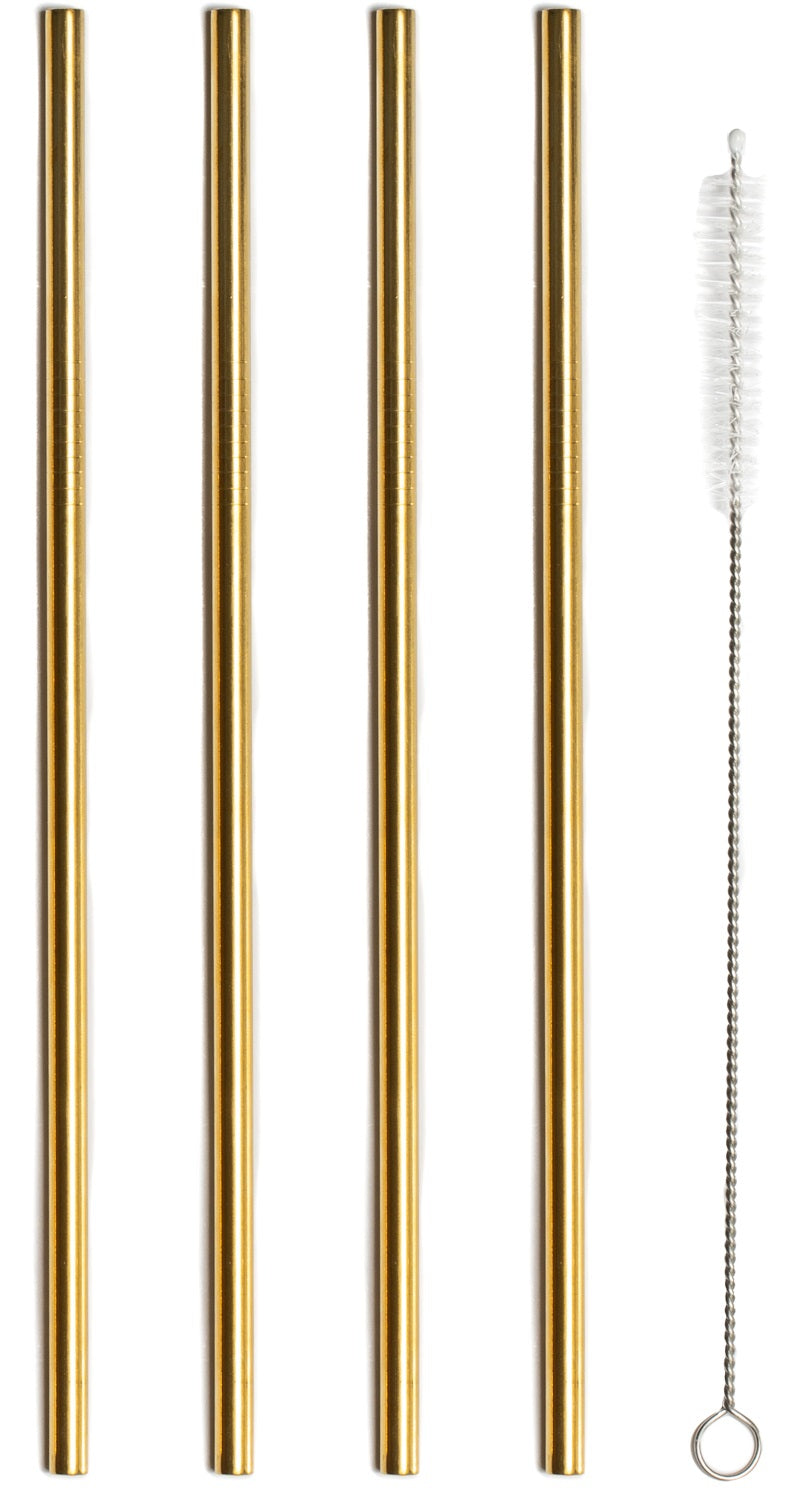 Sareva Herbruikbare rietjes - met borstel - Goud - 4 Stuks