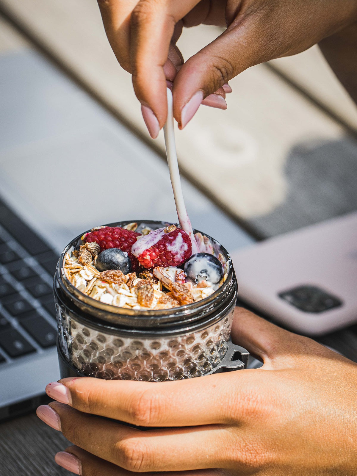 - Je kunt het yoghurt scheiden van hetgeen je wenst te eten op een latere tijdstip