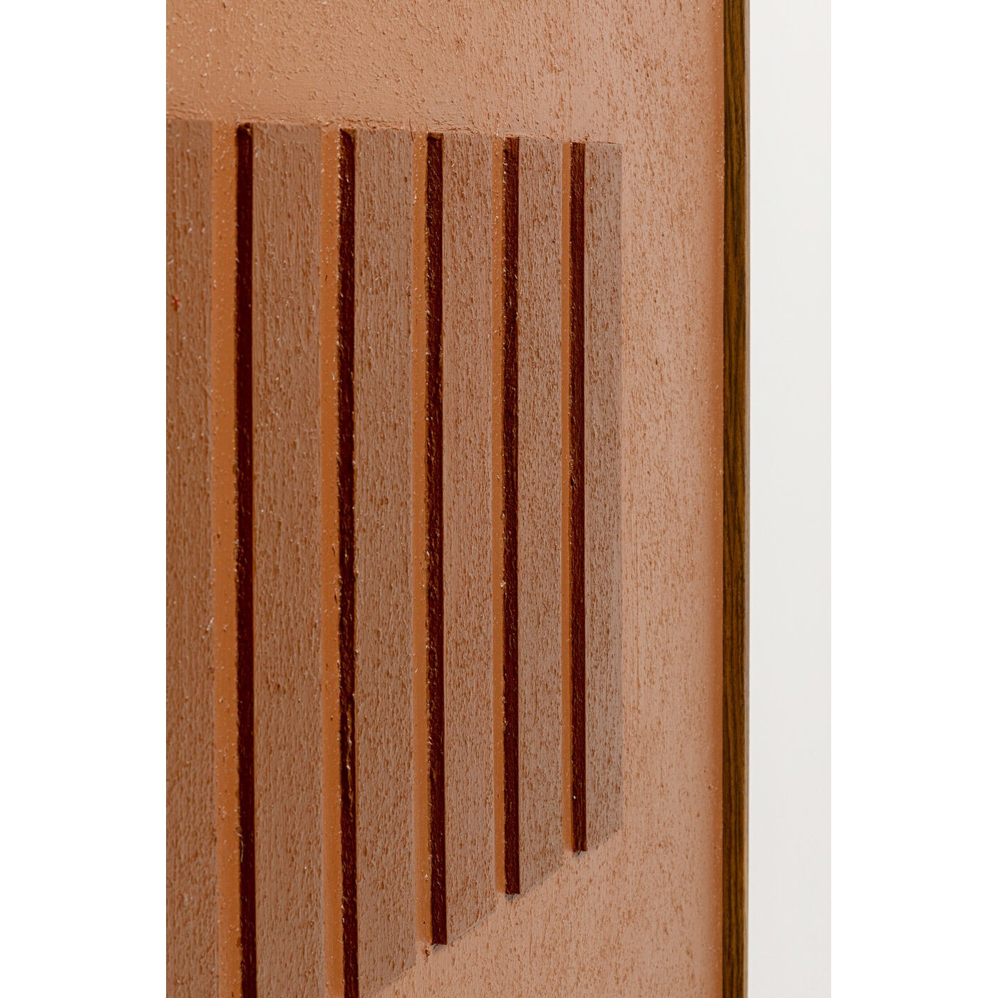 Deze ingelijste muurschildering boeit met een fascinerende combinatie van 3D geometrische toepassingen die een rustige, uitnodigende sfeer creëren. Het natuurlijke massief houten frame voegt een warme touch toe en geeft het werk een organische authenticiteit. Een uniek stuk, met de hand geschilderd op hoogwaardig canvas, wordt een centraal punt in elke kamer, of het nu boven het bed, in de woonkamer of in de gang is. In combinatie met ingetogen meubels en accessoires van natuurlijke materialen creëert het een sfeer die zowel elegant als vriendelijk is.