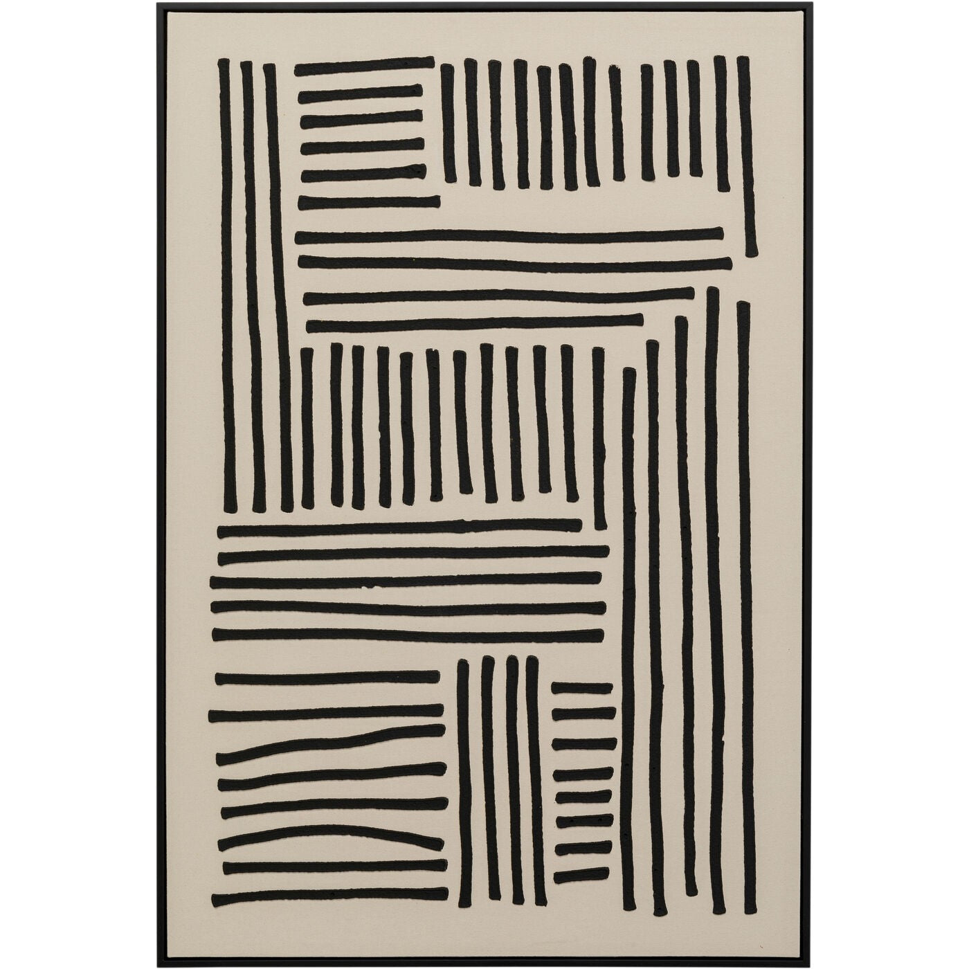 - Schilderij op zwart en crèmekleurig ingelijst canvas, 113 x 73 x 4 cm.