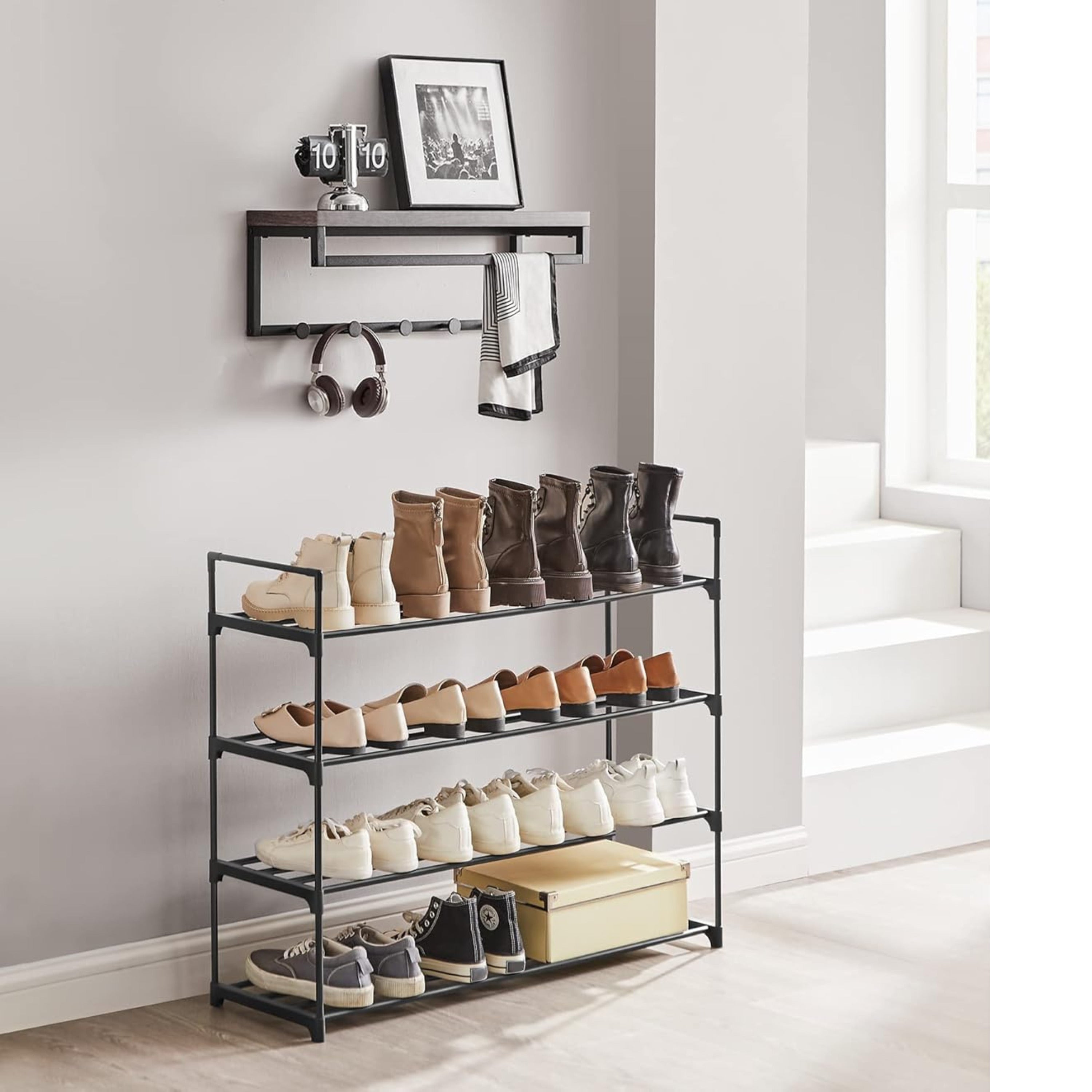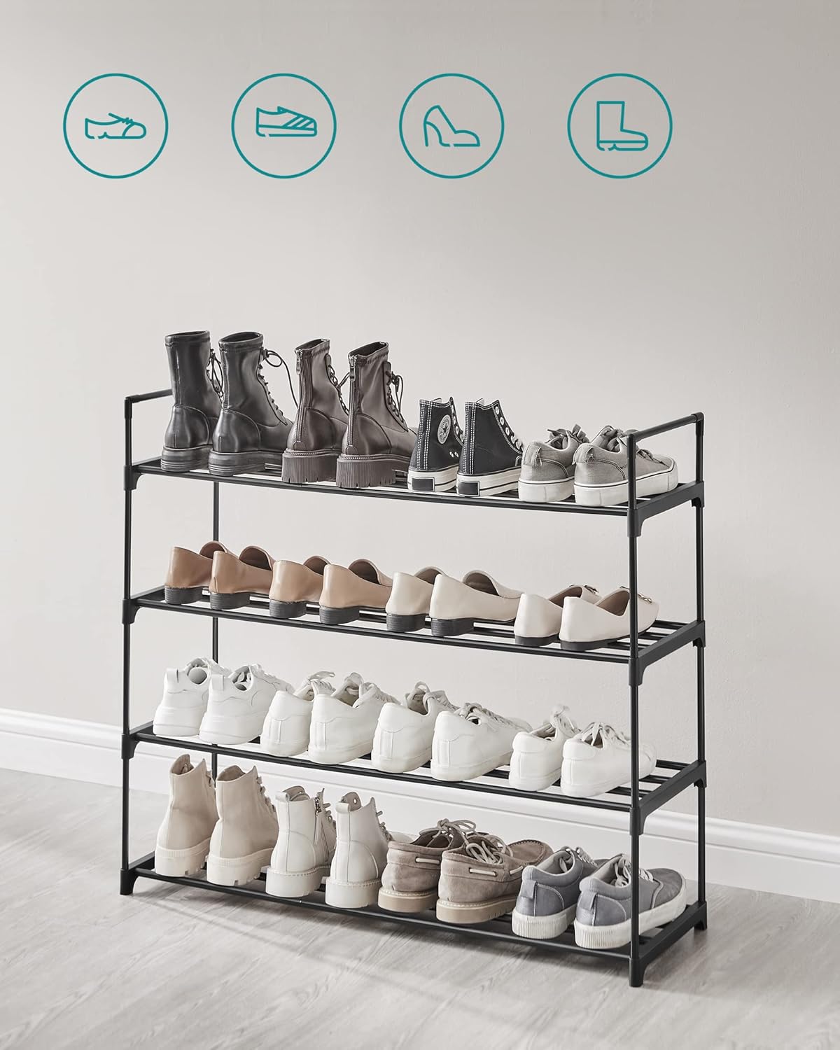 Voorbij zijn de dagen dat al je schoenen over de vloer verspreid staan. Met dit schoenenrek met 4 niveaus, kan je jouw schoenen georganiseerd houden in plaats van ze in een hoekje te laten rondslingeren. Schuif onstabiele rekjes aan de kant. Dit schoenenrek is gemaakt van stevige metalen buizen (Ø 14 mm, wanddikte 0,22 mm) en hoogwaardige PP-kunststof connectoren en kan een totaalgewicht tot 16 kg dragen. 16-20 paar? Geen probleem voor dit schoenenrek! Elke niveau kan 4 paar schoenen bevatten. Dankzij de begrijpelijke instructies en genummerde onderdelen kan je dit schoenenrek in een handomdraai in elkaar zetten.
