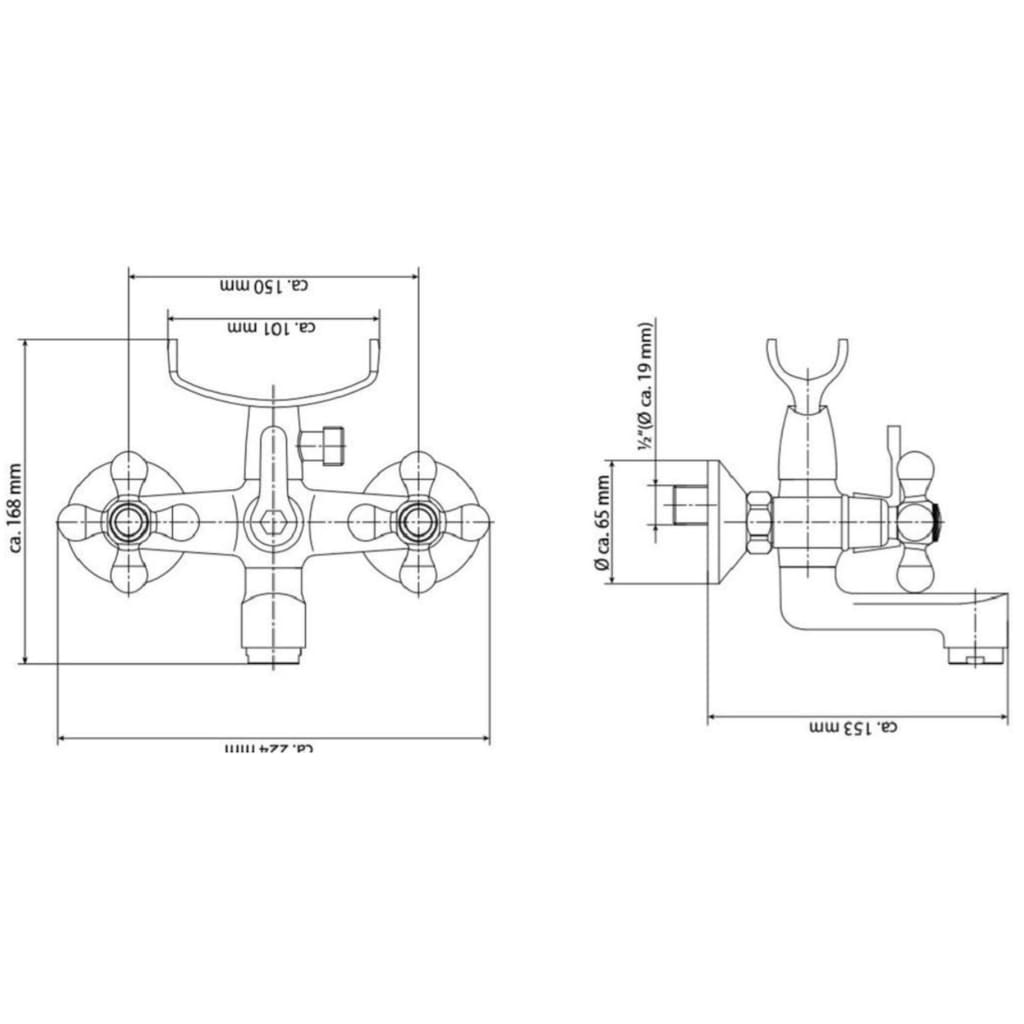- Diameter doucheslangaansluiting: ½" (Ø ongeveer 1,9 cm)