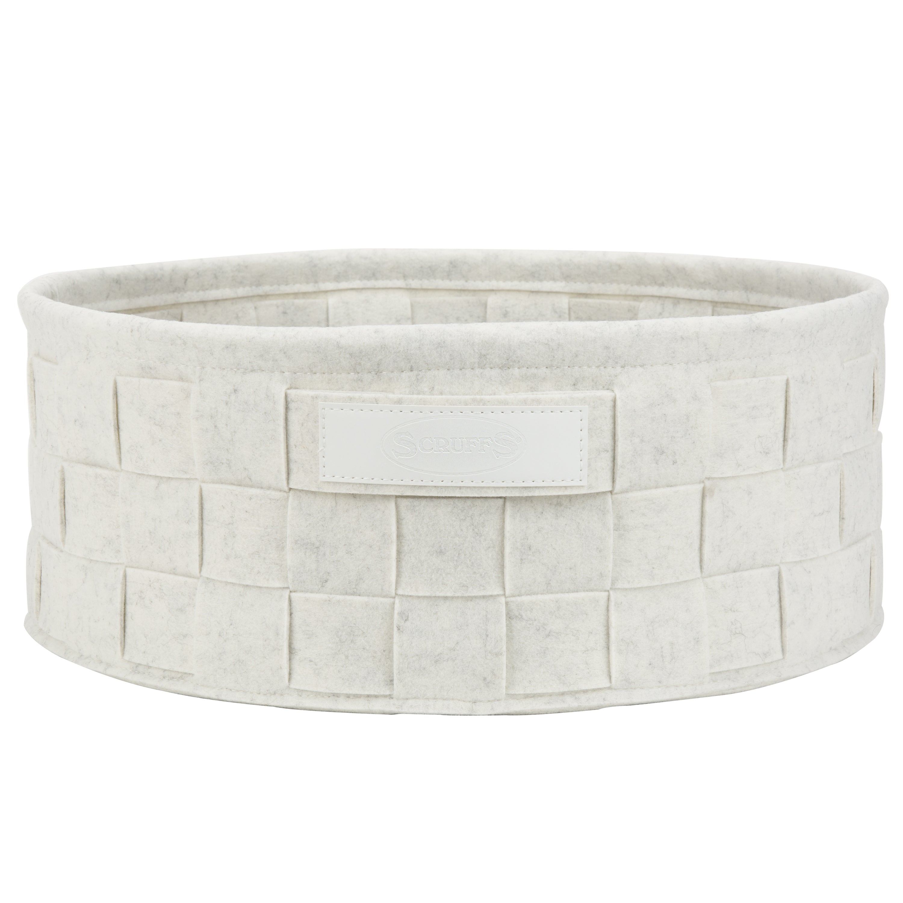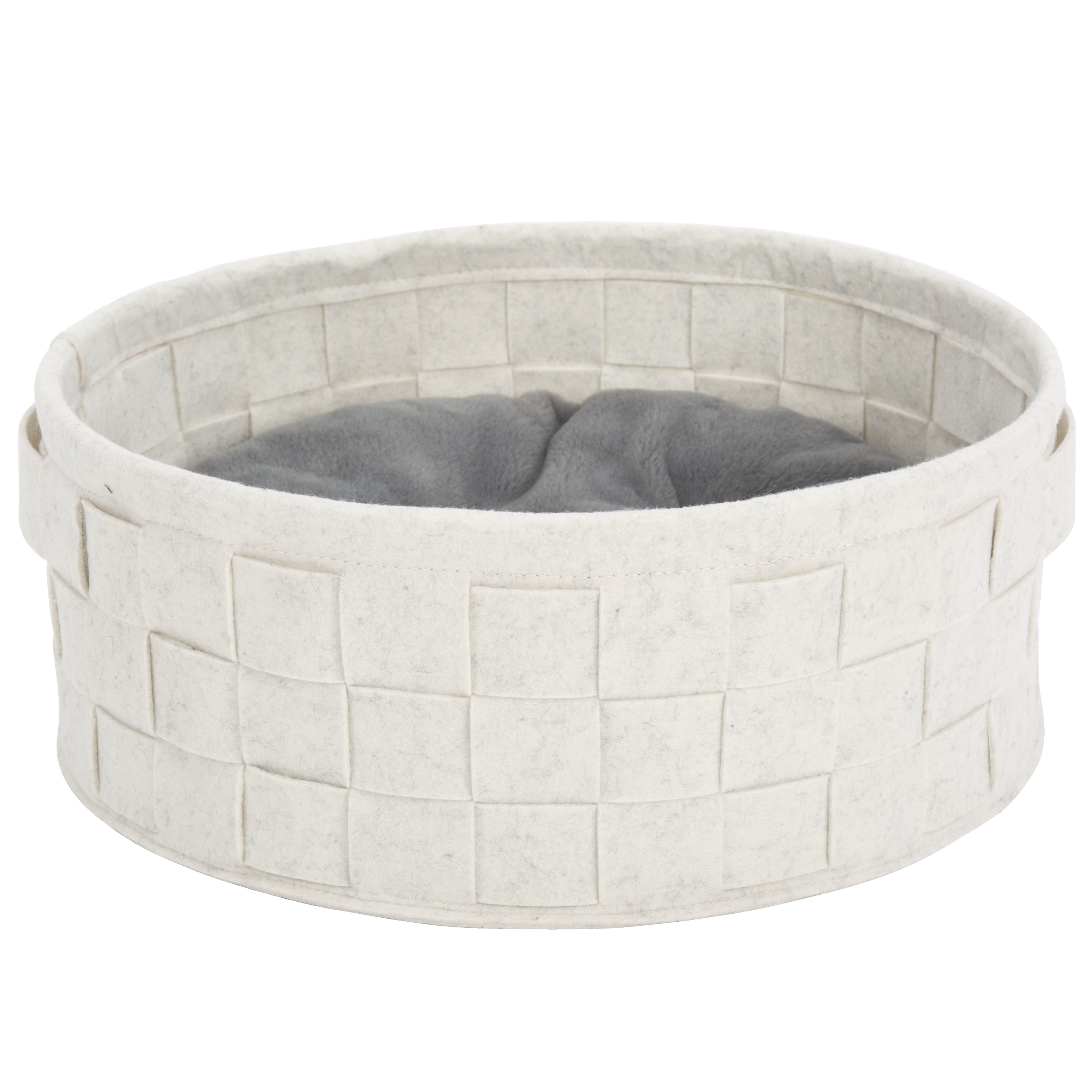 Bescherming en comfort De Habitat mand is gemaakt van hoogwaardig vilt materiaal dat in elkaar gevlochten is. In de mand zorgt een heerlijk zacht, imitatiebont kussentje voor ultiem comfort. Ook fijn; dit kussen kan gewoon in de wasmachine. De hoge opstaande randen zorgen voor extra beschutting en zijn bovendien ideaal als hoofdsteun. De mand is ontworpen voor katten en kleine hondenrassen en heeft een diameter van 45 centimeter.