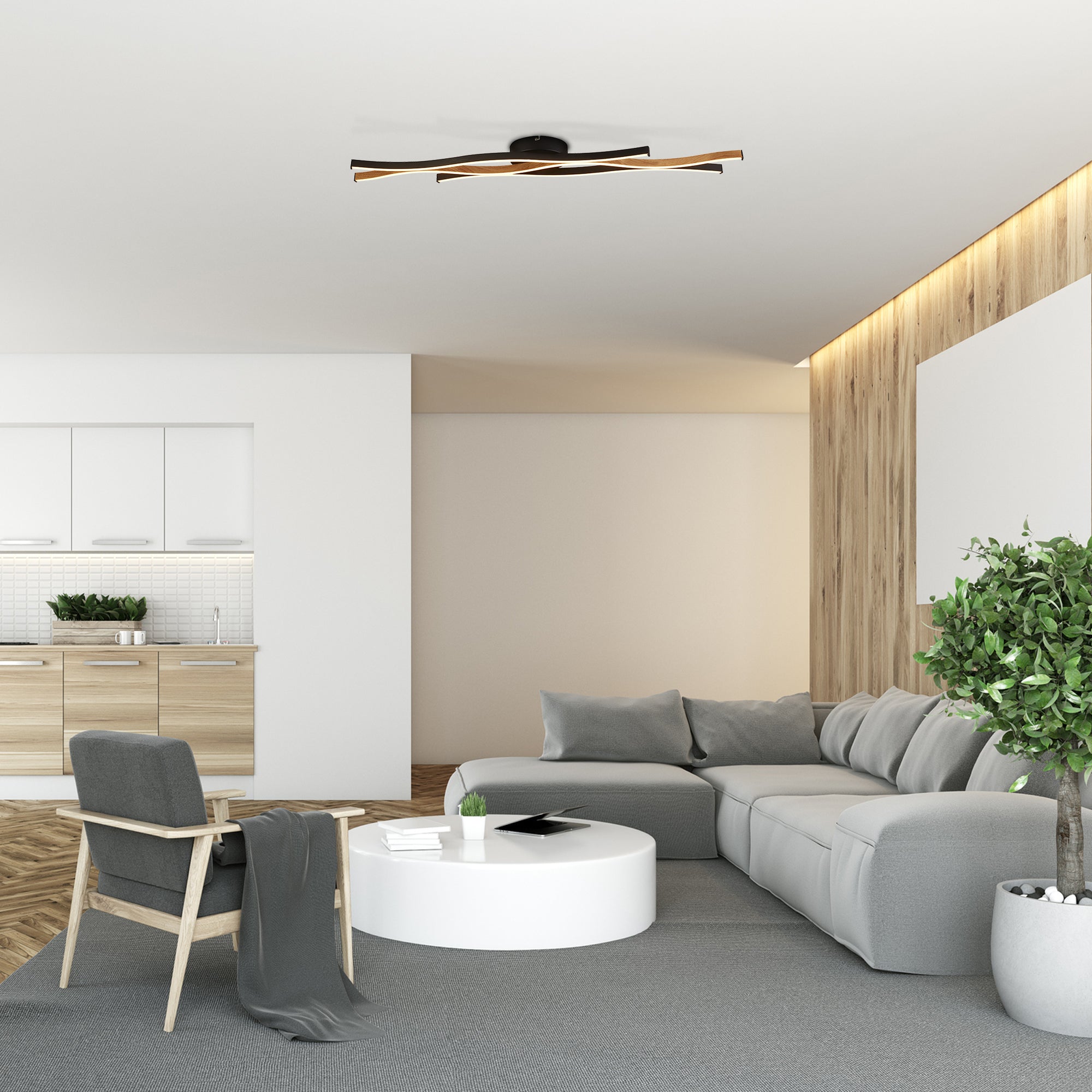 Searchlight Bari Plafondlamp - Swirl Wood