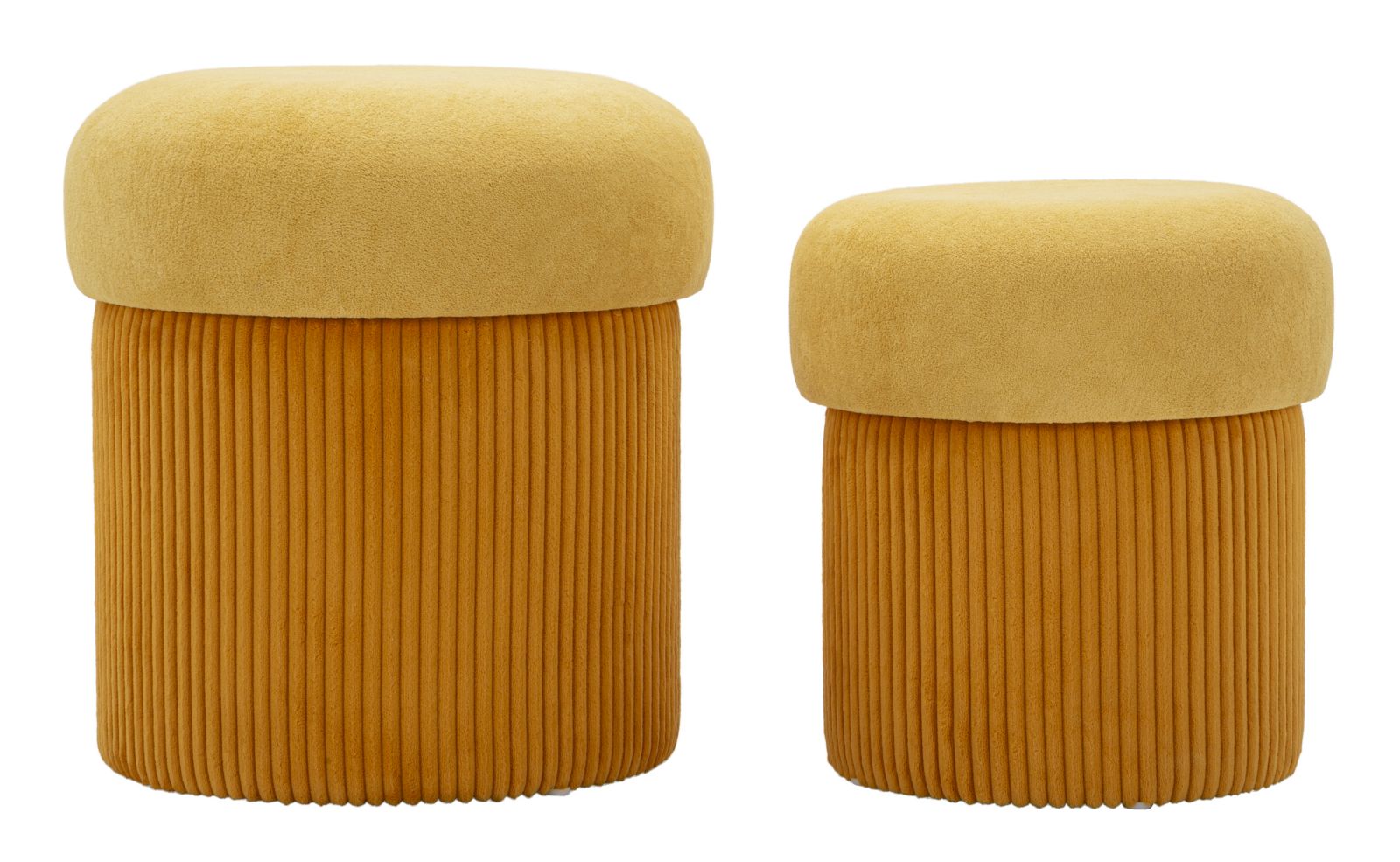 Set van 2 poefs container mosterd cm ø 42x44-35x37