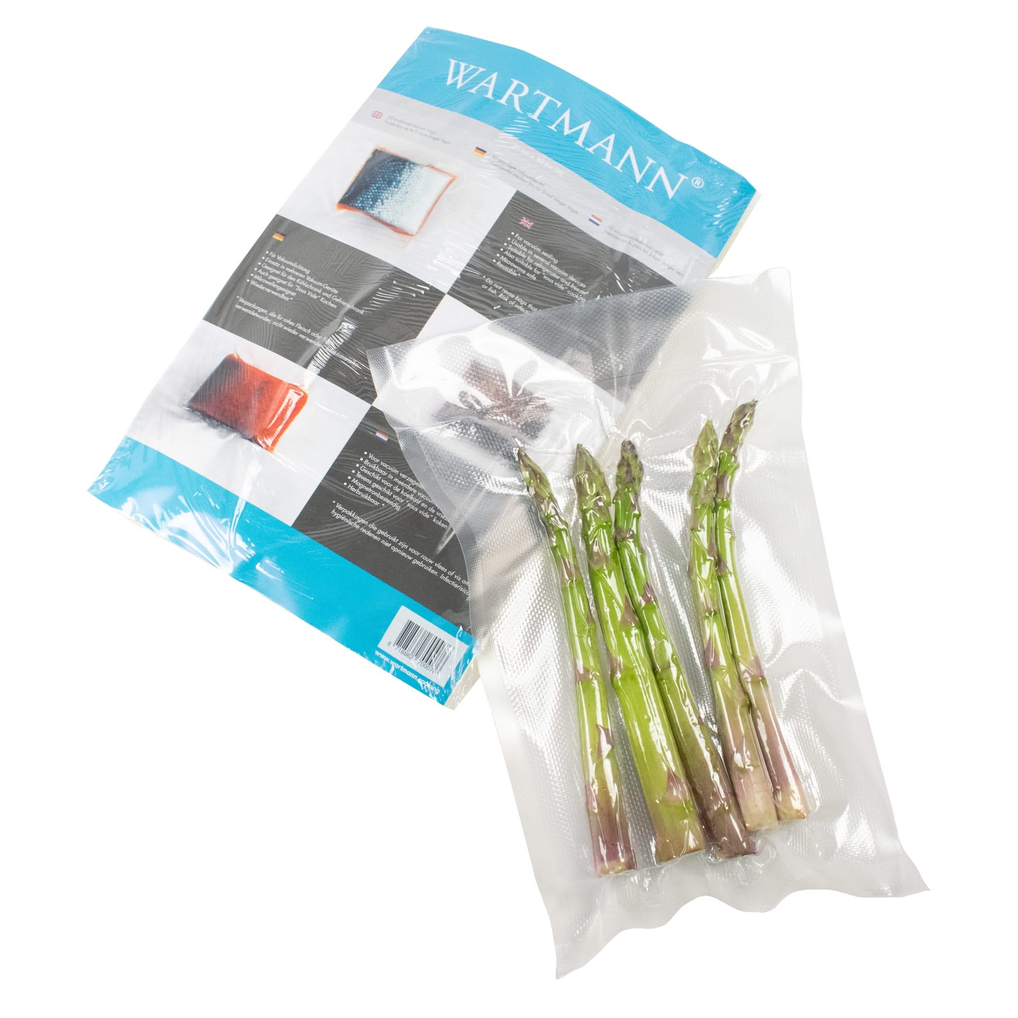 Set van 2 rollen folie voor de vacumeermachine van Wartmann. Formaat: 20cm x 6m Folierollen voor het vacumeren van etenswaren. De rollen zijn geschikt voor de vriezer, koelkast, magentron en sous-vide apparaat. Het folie is te gebruiken in alle soorten vacumeermachines waarbij de vacuümzak buiten de machine blijft. Het folie is BPA-vrij.