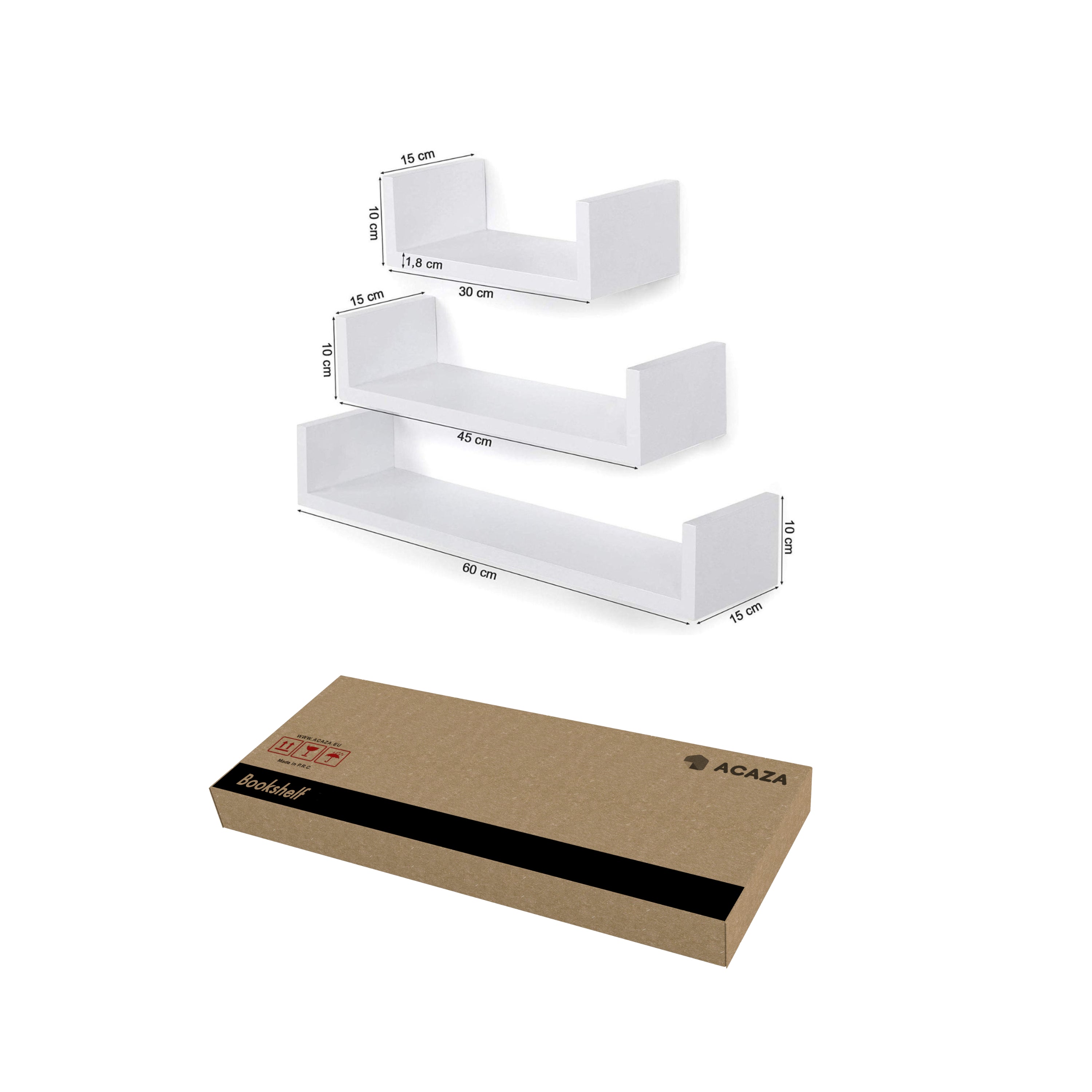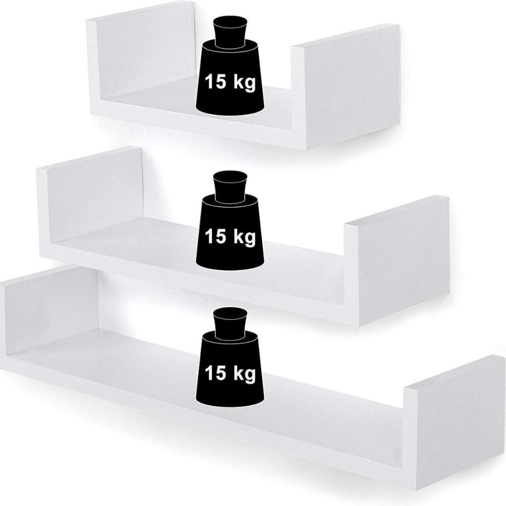 Set van 3 Boekenplanken - U-vormige Wandplank - Wit