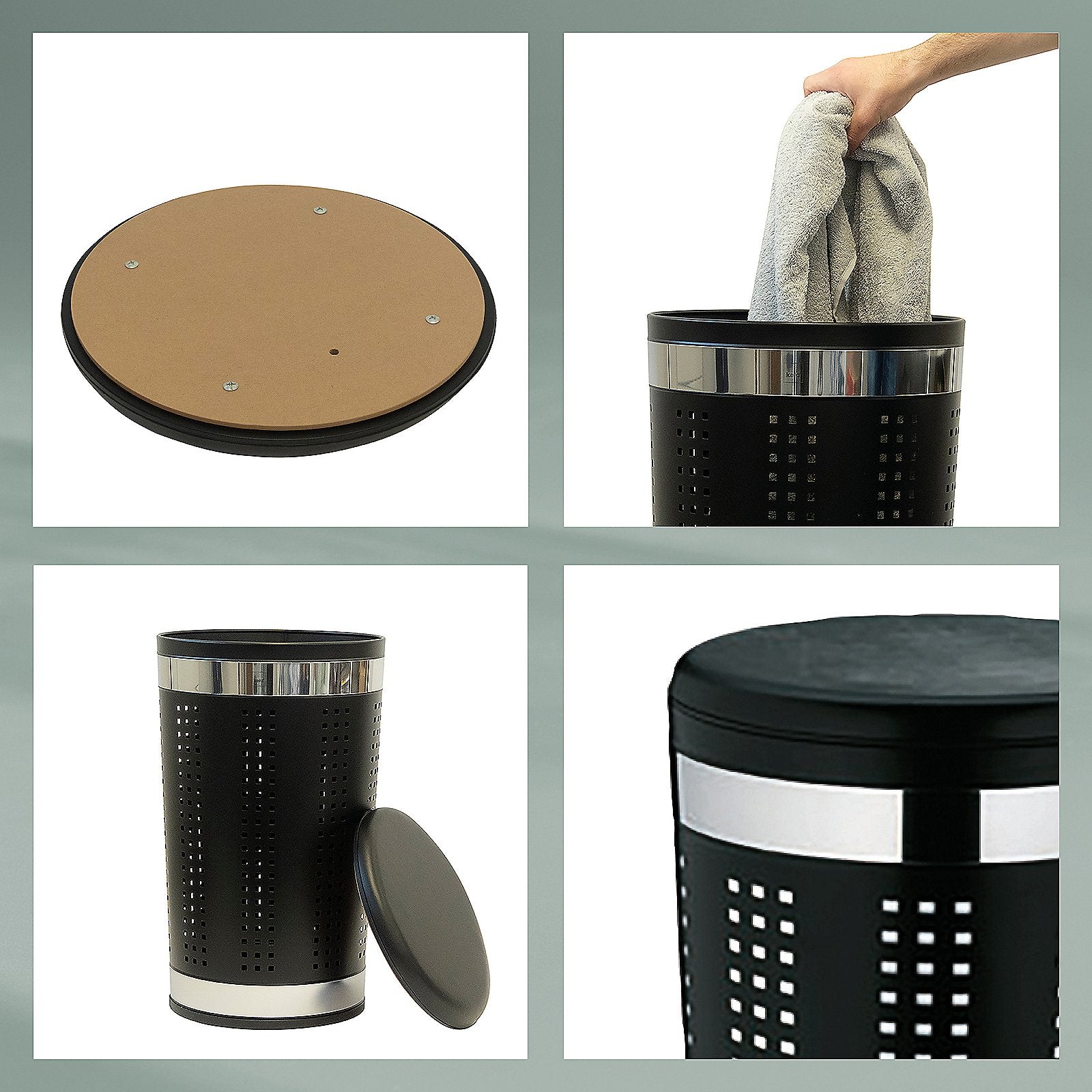 De Sevilla wasmand van Kela is ideaal voor verschillende plekken in huis. Hij is gemaakt van stevig metaal met poeder coating en heeft een speciale deksel waar je op kunt zitten. Door de gaatjes aan de zijkant van de wasmand kun je eenvoudig zien hoe vol hij zit. Hij is 60,5 cm hoog en heeft een diameter van 35 cm.