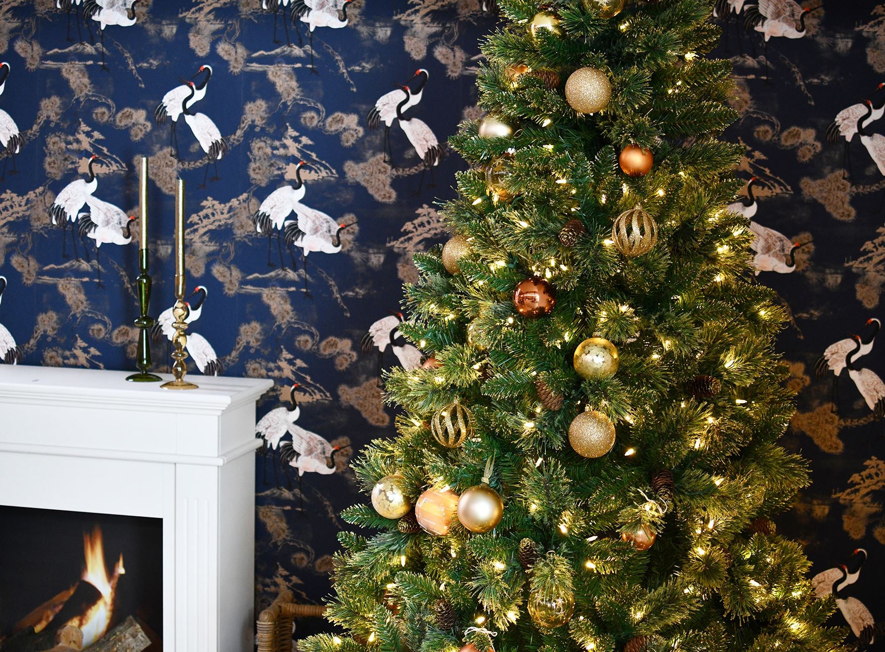 Shimmery Golden Bristle verlichte kunstkerstboom - 213 cm - Groen met