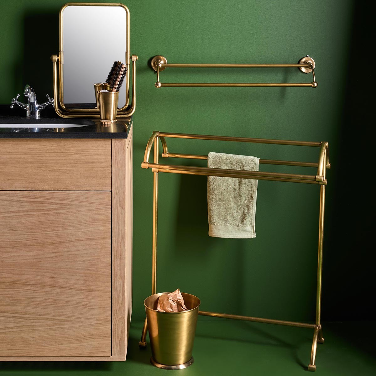 De tafelspiegel is het onmisbare accessoire voor uw badkamer. Hij kan overal worden geplaatst voor gebruiksgemak, in de badkamer of op een kaptafel voor het gemakkelijk aanbrengen van make-up. Met zijn messing materiaal, samengesteld uit een verouderde goudlegering en een glazen spiegel, zal het een chique en klassieke toets aan uw kamer geven. Afmetingen: 35 x 46 x 13 cm Materiaal: MessingSignature, gevestigd in de buurt van Lille in Frankrijk, creëert en herwerkt al meer dan 20 jaar meubels. De collectie biedt een ruime keuze aan meubelen en decoratieve artikelen. De smaak van het echte meubilair bedacht in de regels van de kunst, en een oog voor eclectiek biedt een mengsel van originaliteit en authenticiteit. Ontdek een selectie van meubelen met edele en kwalitatieve materialen