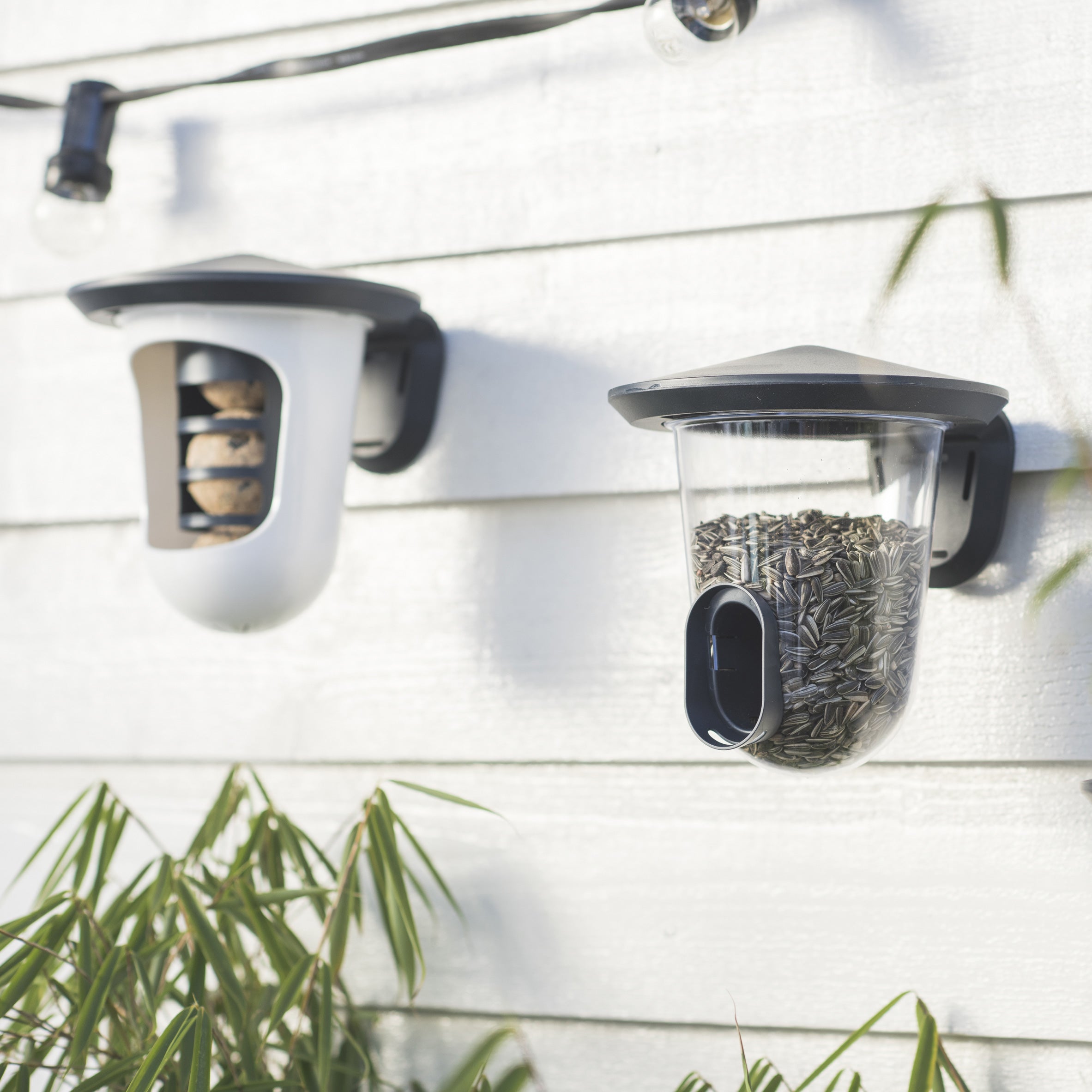 Eenvoudige bevestiging Je bevestigt de feedR eenvoudig aan je schutting, regenpijp of een boom. Hiervoor wordt klittenband meegeleverd, maar je kunt hem ook met schroeven (excl.). Is het voer op? Dan draai je de transparante bak van het dakje en vul je hem eenvoudig met nieuw voer. Daarnaast maak je hem zo heel makkelijk schoon! De feedR heeft een relatief kleine opening, waardoor er voornamelijk kleine vogeltjes zoals mussen, koolmezen of vinken op afkomen.
