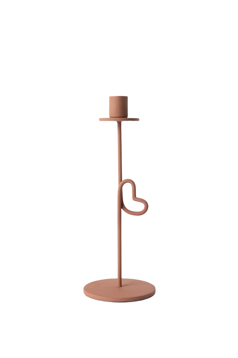 Een kandelaar om verliefd op te worden! Deze donkerroze kandelaar met hart is gemaakt van ijzer en hij maakt elke ruimte gezellig. Combineer de kandelaar eens met onze leuke gedraaide kaarsen. Afmeting: 24x9 cm.