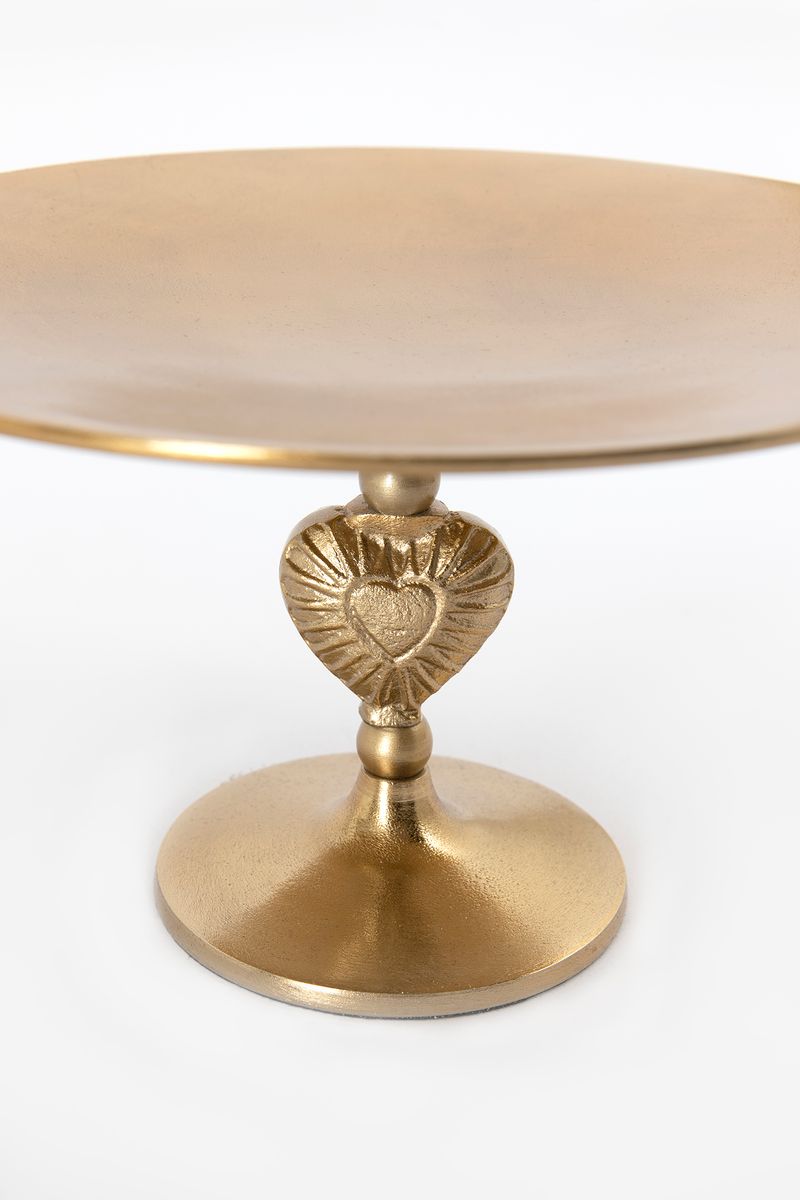 Goudkleurig taartplateau met een hartvormig detail aan de voet van Sissy-Boy. Door etagères te gebruiken kun je heel leuk hoogte en daarmee dynamiek aan je gedekte tafel toevoegen. Let op: niet vaatwasser bestendig. Materiaal: 100% Aluminium. Afmeting: 22,5x14,5 cm.