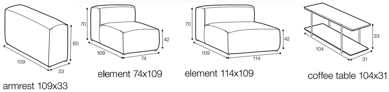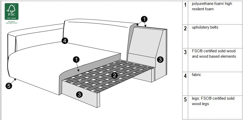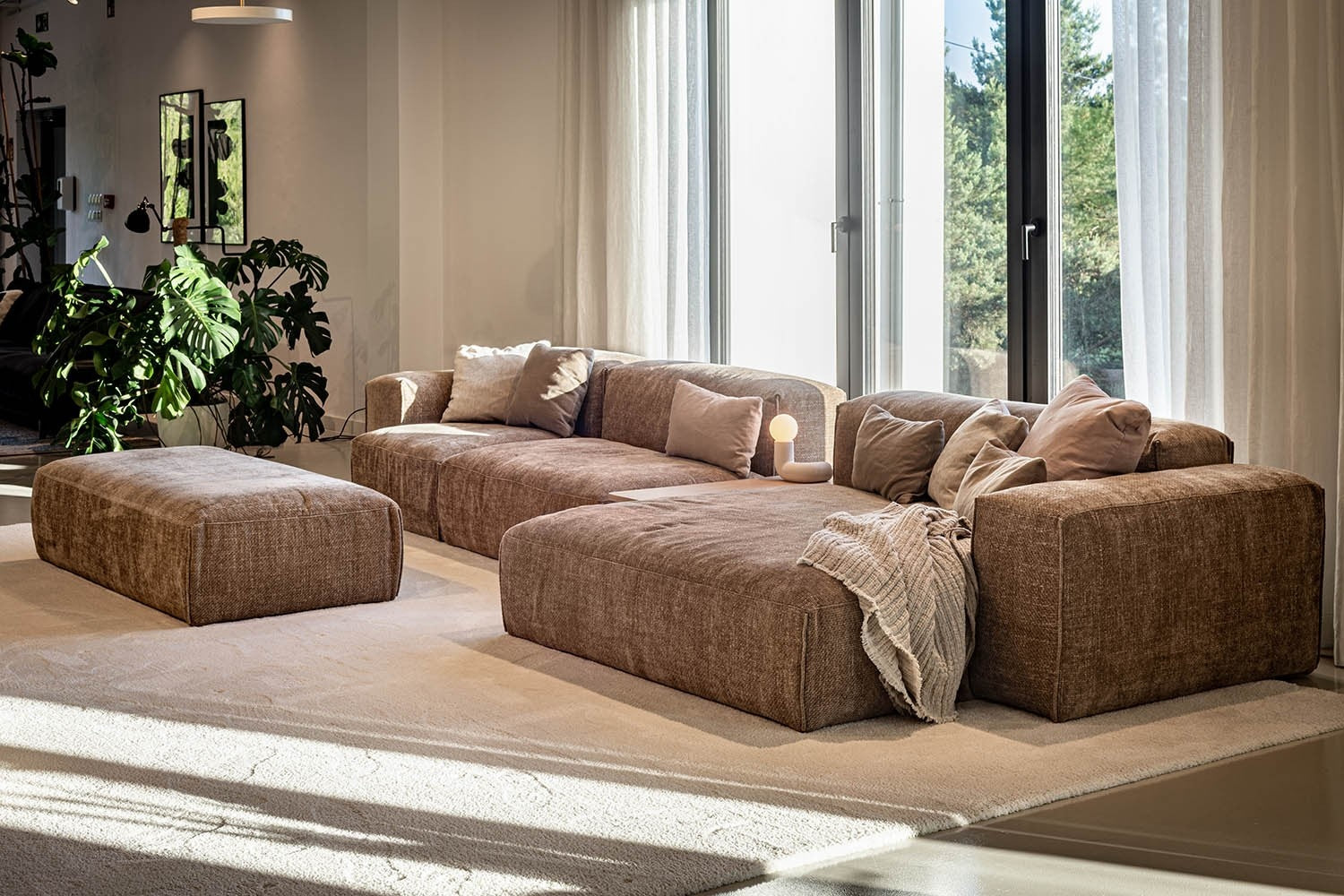 Sits Edda 3-Zits Bank + Chaise Longue Bruin en Salontafel