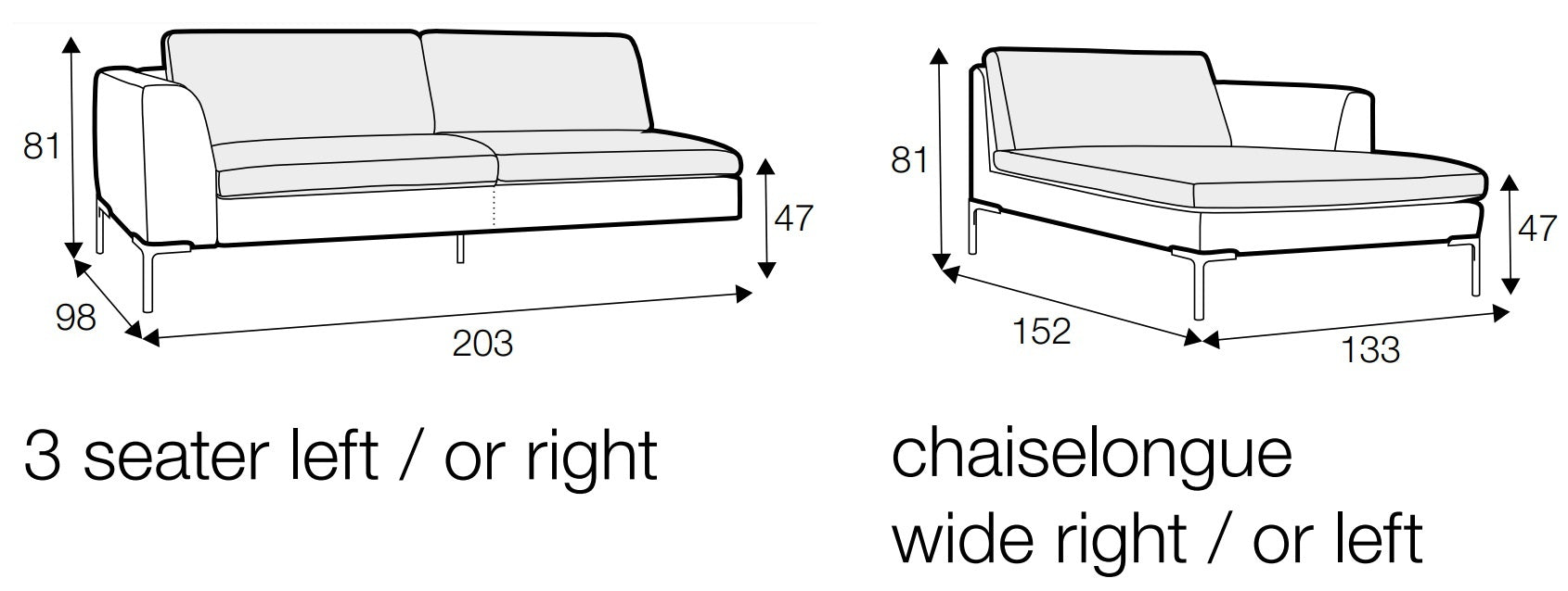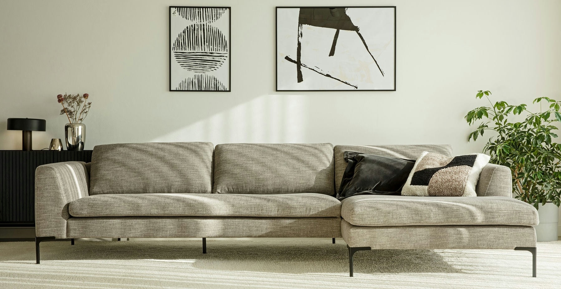 Sits Elton 3-Zits + Wide Chaise Lounge Grijs Beige Rechts|Links
