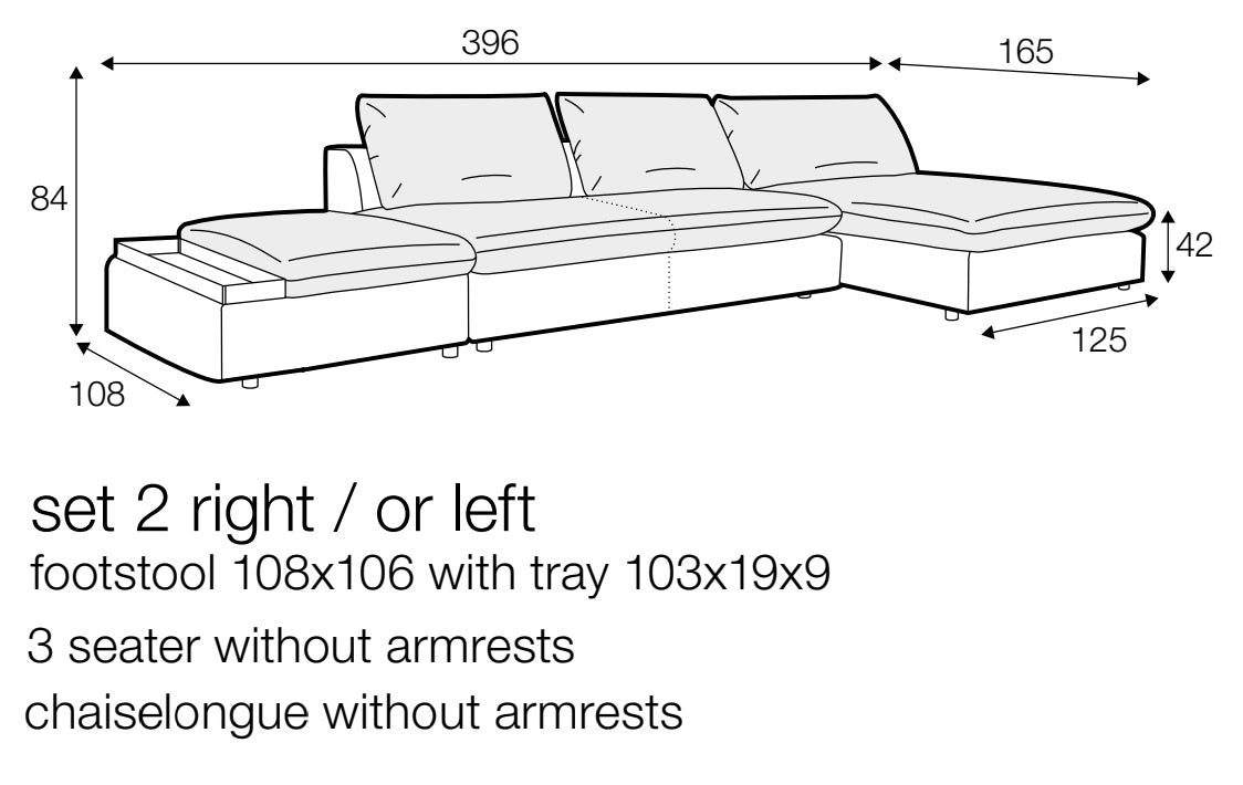 Sits Milou Natural 3-zits Open End Hoekbank met Voetstoel