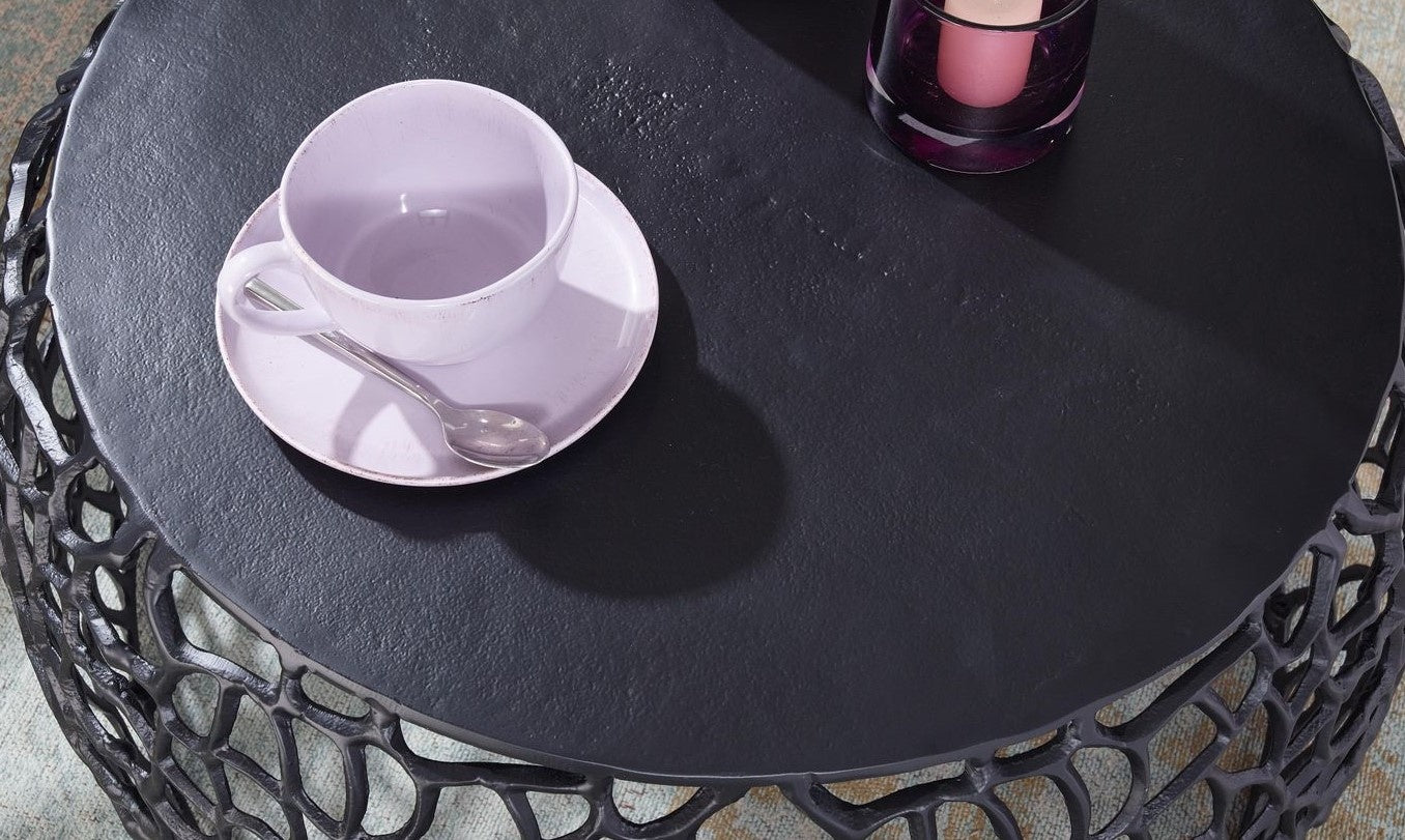 De handgemaakte Love salontafel van Sky Style is bijzonder vormgegeven. Hij is gemaakt van metaal en versierd met een mooi patroon. Daar kun je niet anders dan vrolijk van worden! Dankzij zijn ronde vormen zorgt hij ook voor gezelligheid in huis.