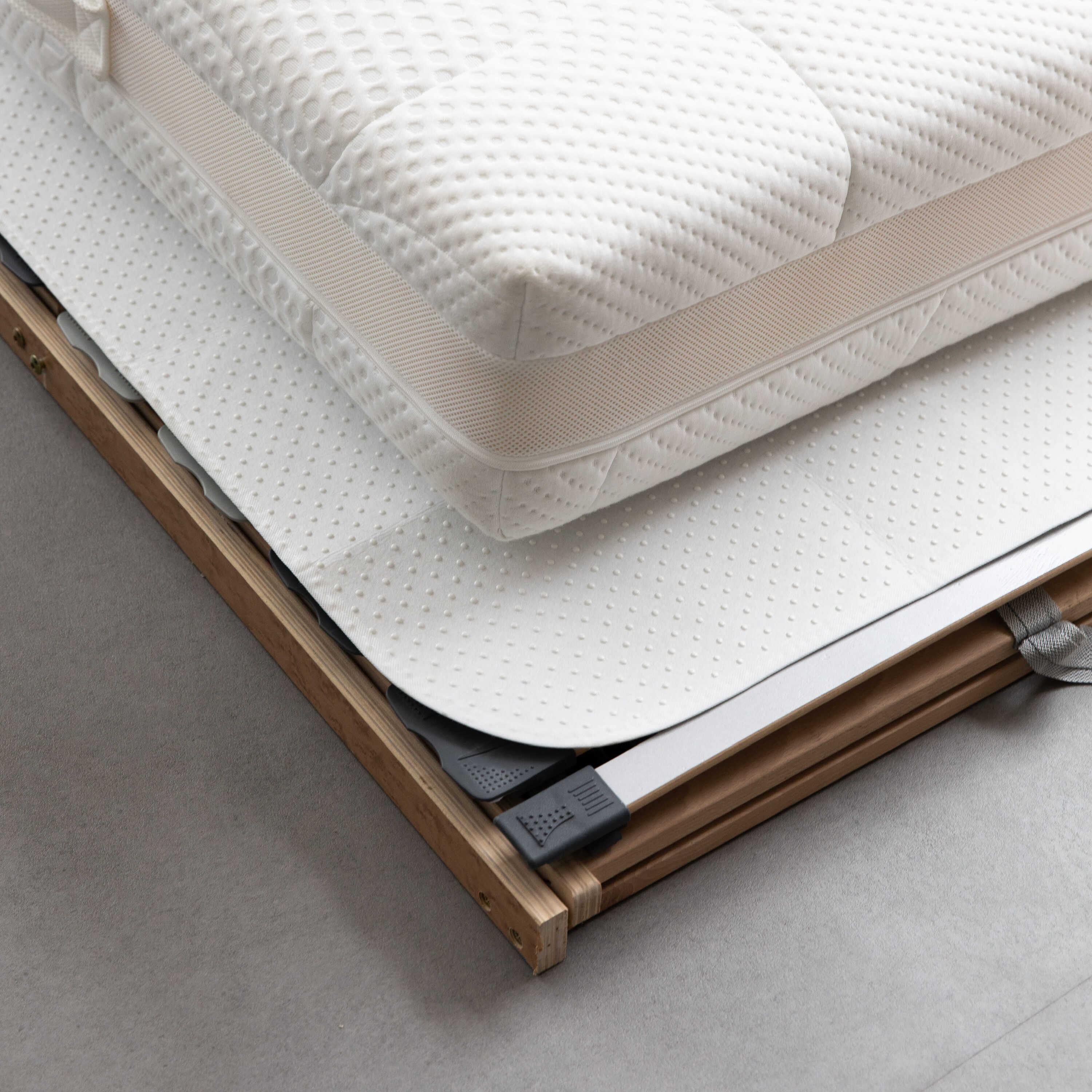 U voorkomt deze schade eenvoudig met het gebruik van een matrasbeschermer onder de matras. Als u zo’n fijne, luxe verstelbare bedbodem heeft, zodat u lekker in bed kunt lezen, merkt u dat uw matras wat zal schuiven. Ter bescherming van uw kostbare matras, en om verschuiven te voorkomen, werd deze unieke anti-slip SLIP-STOP matrasbeschermer ontwikkeld.