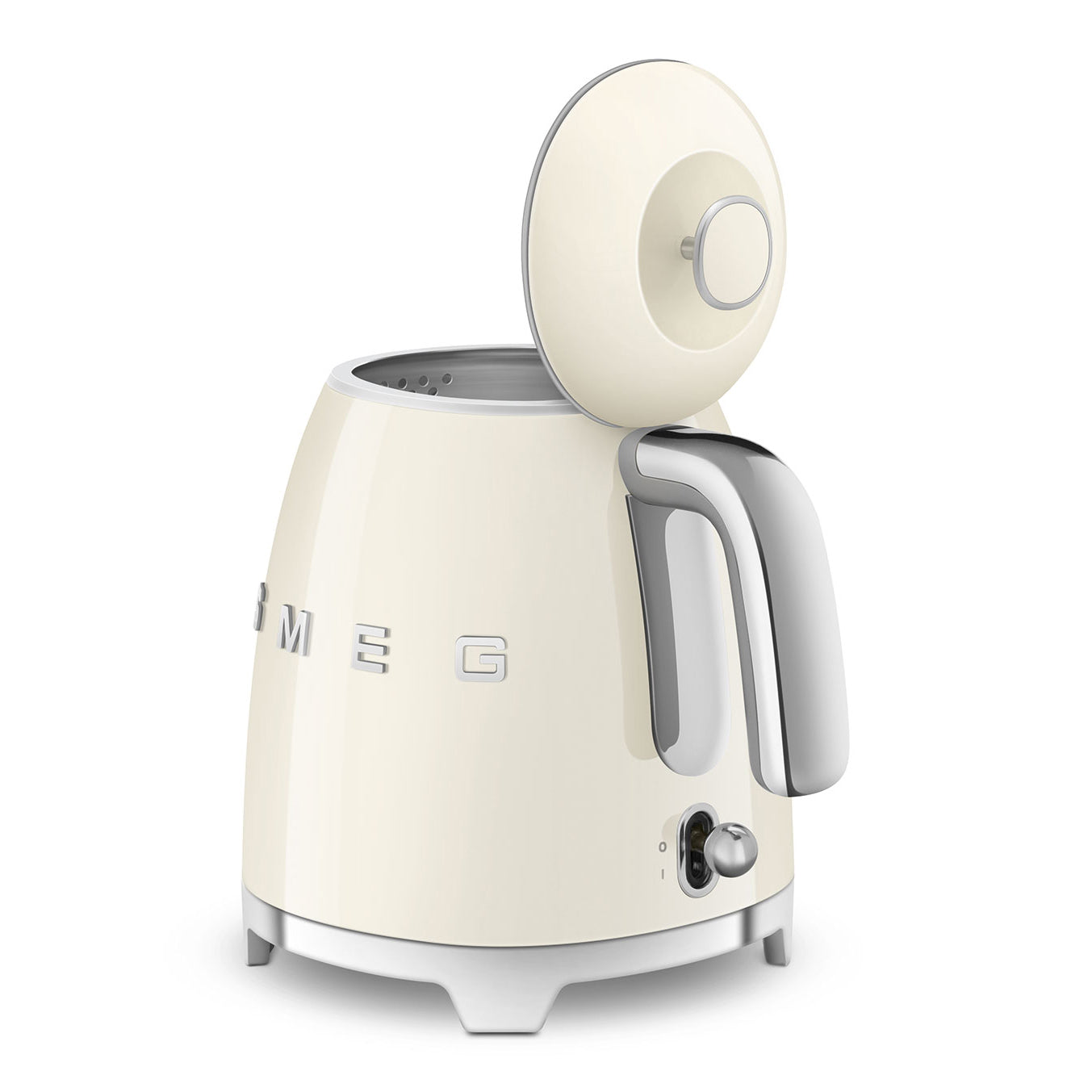 Klein maar fijn design De Smeg mini waterkoker is met zijn bescheiden formaat ideaal in elke keuken. Hij heeft een inhoud van 0,8 liter wat ruimvoldoende is voor drie koppen thee. Met een vermogen van 1400 Watt kookt het water in een handomdraai. De buitenkant is gemaakt van gemakkelijk te reinigen kunststof en de binnenkant van RVS. Dankzij het dubbelwandige design wordt de buitenkant niet warm, wel zo fijn! Je vult de waterkoker eenvoudig door de deksel te openen met de stijlvolle knop aan de bovenzijde. De waterkoker is voorzien van een automatische veiligheidsschakelaar, geïntegreerd RVS waterfilter en een interne waterniveau indicator.