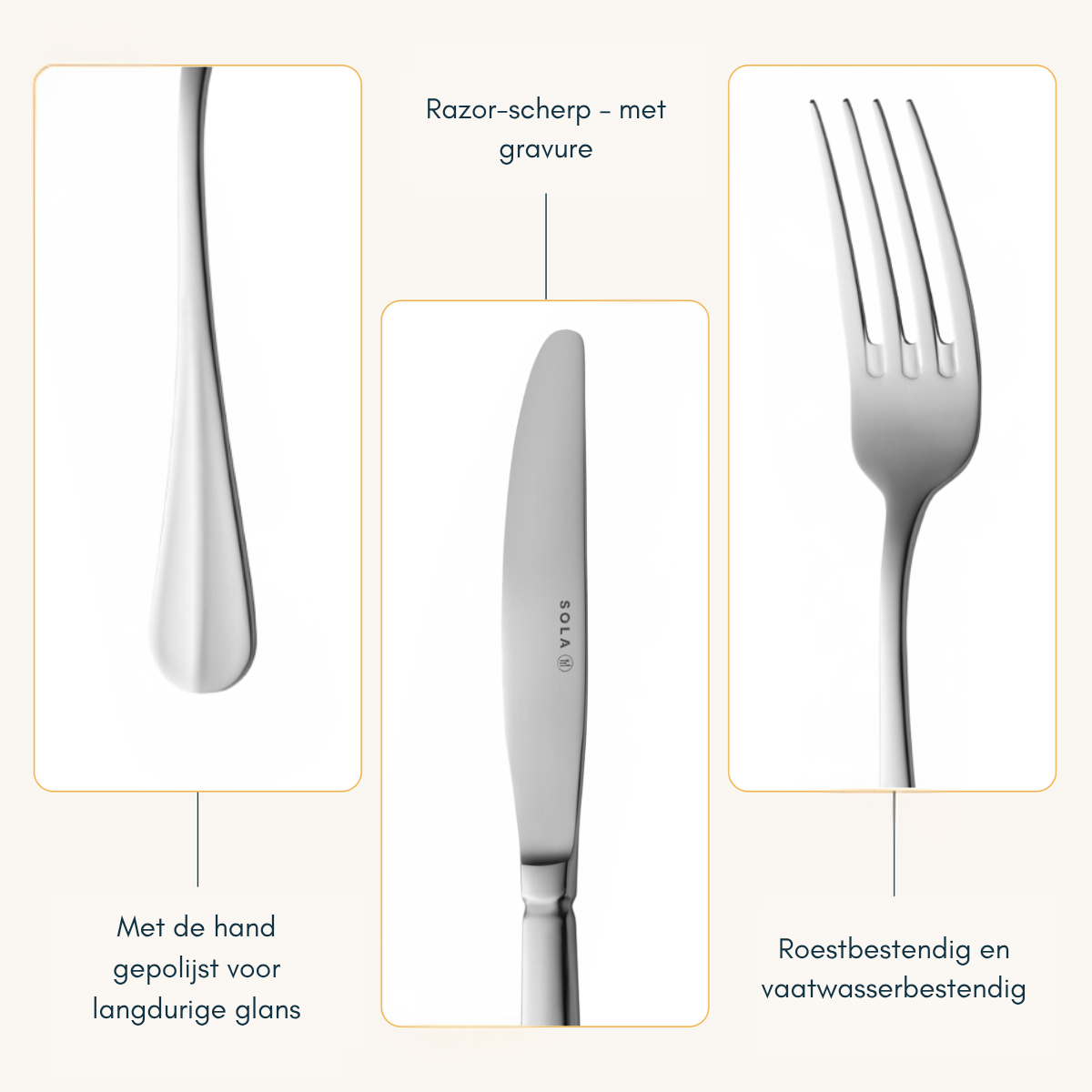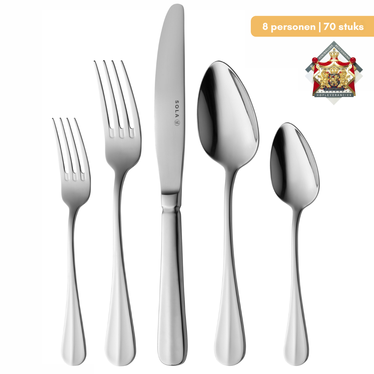 - De complete 70-delige Sola Bestekset Hollands Glad, bestaande uit de hierboven genoemde onderdelen.