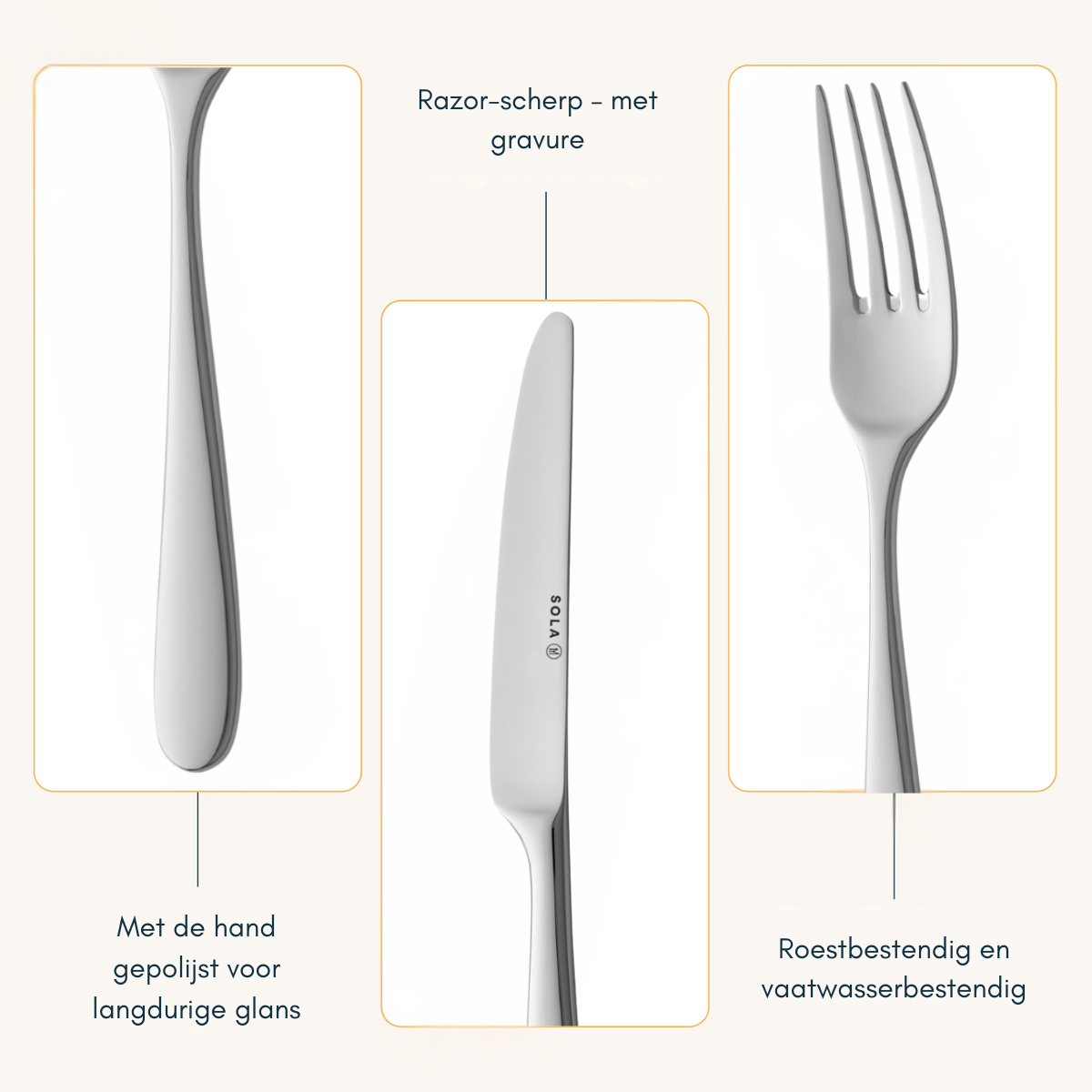 De Sola Nordica besteklijn is niet alleen stijlvol, maar ook praktisch. Het is vaatwasserbestendig, waardoor het geschikt is voor dagelijks gebruik. Met zijn tijdloze en veelzijdige ontwerp past de Nordica collectie bij elke gelegenheid, van een informeel diner tot een feestelijk etentje. Een ideale keuze voor wie houdt van modern design en uitstekende kwaliteit!
