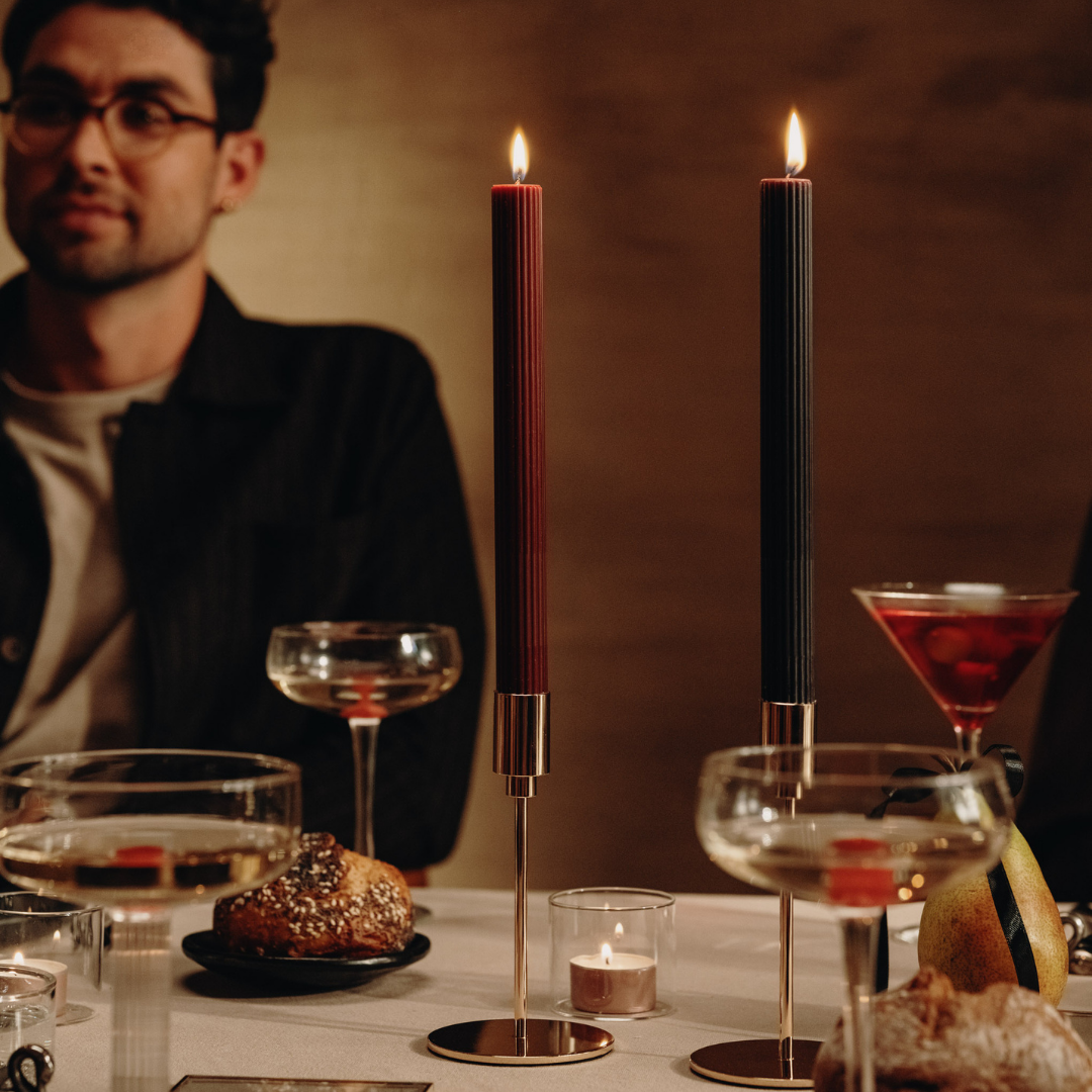 De Iconic Collectie van Spaas. Verbazingwekkende premium dinerkaarsen voor elk intiem moment en elke feestelijke gelegenheid. Met de subtiele maar kenmerkende geribde textuur breng je uitgebreide diners en gezellige brunches naar een hoger niveau. Gebruik ze in combinatie met de geribde dinerkaarsen in onze gouden kandelaars, voor het delen van fijne momenten en om in stijl te genieten van een digitale detox.