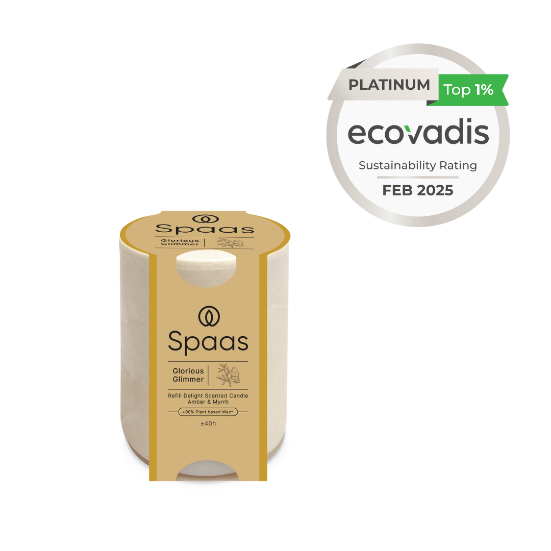 Duurzaamheid: Deze refill is gevuld met +90% plantaardige was* (*een mengsel van raapzaad en kokosnoot), waarmee je de Delight geurkaarsen steeds opnieuw kan bijvullen en de levensduur van de glazen kan verlengen. Bij Spaas geloven we sterk dat het streven naar kwaliteit, duurzaamheid en maatschappelijk verantwoord ondernemen een voortdurende inspanning is van heel ons team. Als trotse ontvanger van het platinum label van Ecovadis, behoren we tot de top 1% van best presterende bedrijven wereldwijd op het gebied van duurzaamheid binnen het label. In ons diepgaande duurzaamheidsverslag tonen we onze prestaties en initiatieven op het vlak van milieu, maatschappij en deugdelijk bestuur (Environmental, Social & Governance oftewel ESG) en onze passie voor innovatie. Verder delen we ook onze doelstellingen voor de toekomst.