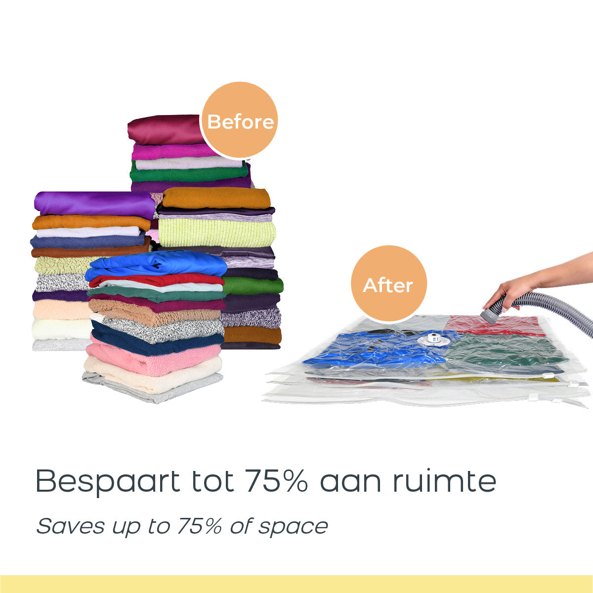 Ben je op zoek naar een oplossing voor het ruimtegebrek in je kast, onder je bed of in je koffer? Zoek dan niet verder, want de Space Buddy Vacuüm Opbergzakken zijn de ultieme oplossing voor het maximaliseren van de opslagruimte in huis. Deze 7-delige set vacuümopbergzakken is ontworpen om je te helpen om je spullen efficiënt te ordenen en op te bergen en ze tegelijkertijd te beschermen tegen stof, vocht en geurtjes. Vacuüm opbergzakken besparen tot 75% aan ruimte