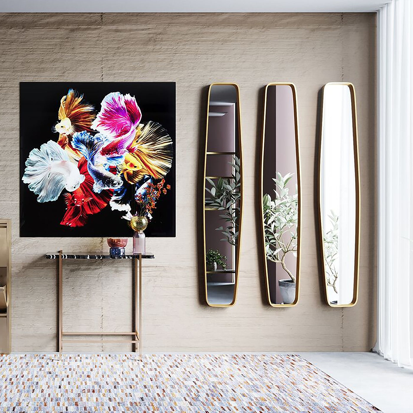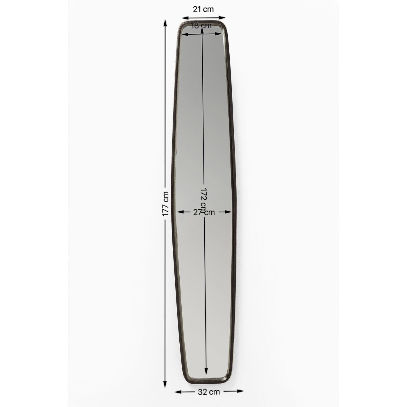 - Deze spiegel is elegant smal, zodat hij perfect past op kleine gangmuren.