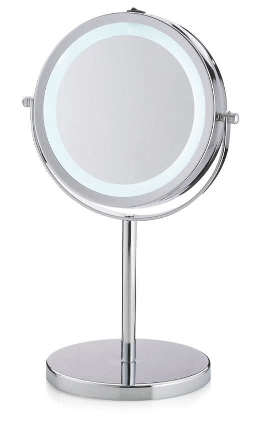 Draaibaar en verstelbaar: Deze spiegel is voorzien van een draaimechanisme, waardoor je hem gemakkelijk kunt draaien en de gewenste kijkhoek kunt instellen. Dit maakt het handig voor het aanbrengen van make-up, scheren of het verzorgen van jouw gezicht. Je kunt de spiegel naar wens aanpassen voor optimaal gebruiksgemak.