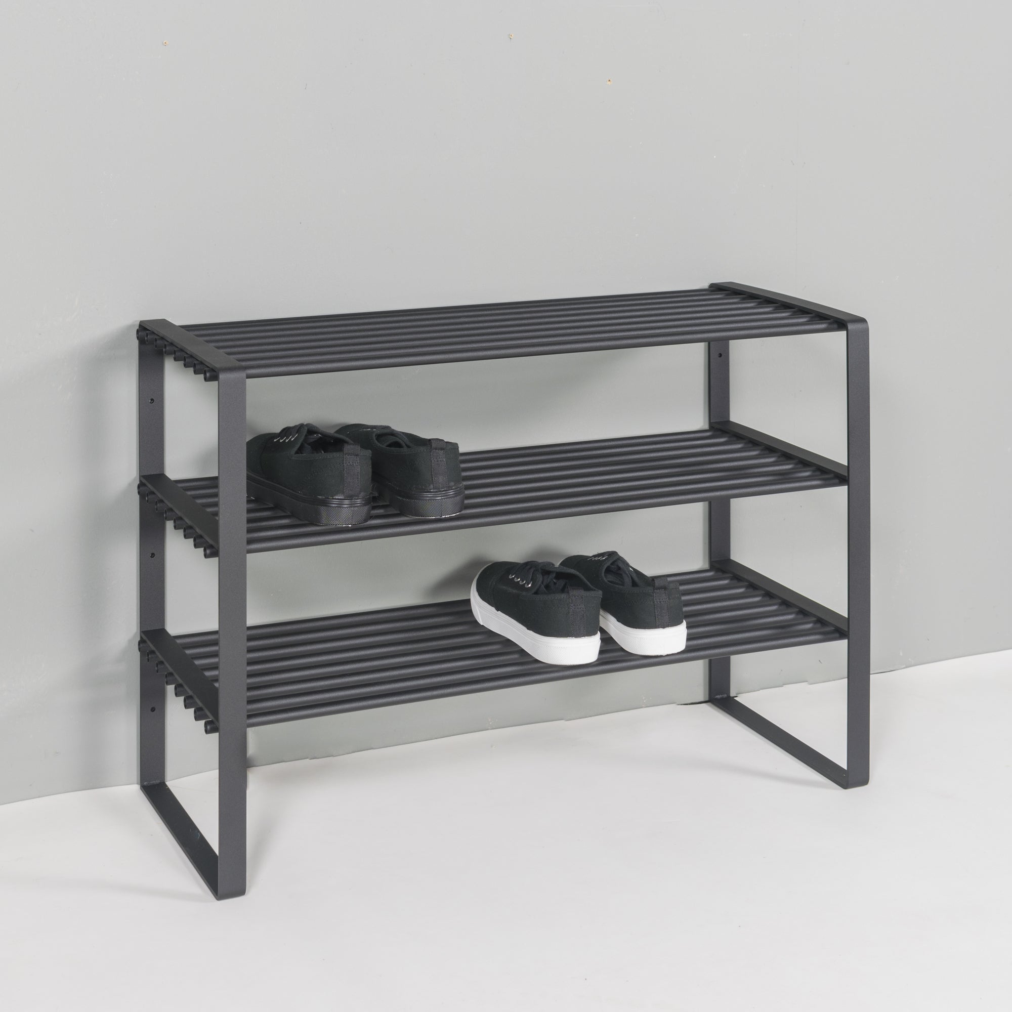 Het Rex schoenenrek van Spinder Design heeft een stoer ontwerp gemaakt van stijgerbuizen en is ideaal voor in de hal. Het rek biedt plaats voor genoeg schoenen, zo heb je geen losse schoenen meer in de hal, voortaan is het extra goed opgeruimd!