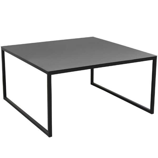 Salontafel Malyna heeft een frame en een tafelblad uit zwart structuur gepoedercoat staal.