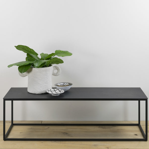 Salontafel Stern heeft een frame en tafelblad uit zwart gepoedercoat staal.