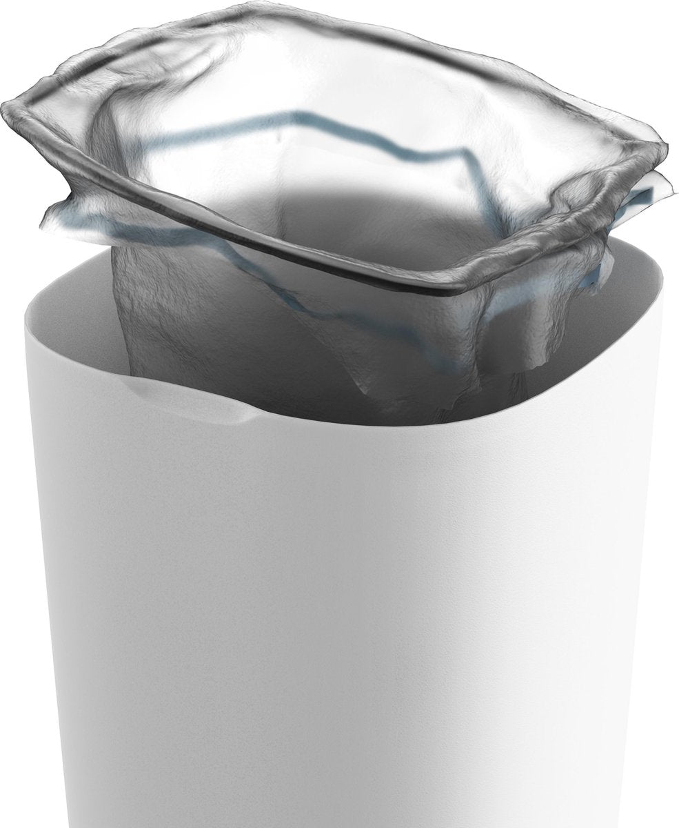Nog een pluspuntje van deze prullenbak; Aan de binnenkant zit een ring waar je de vuilniszak omheen kunt hangen. De vuilniszak steekt daardoor niet aan de buitenkant van de prullenbak uit en blijft stevig op zijn plek. De prullenbak werkt perfect met de BagFitter Groen-A afvalzakken. Deze zijn speciaal op maat gemaakt voor de Bredbyn! Vingerafdrukvrij en vuilafstotend