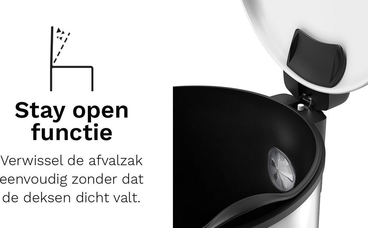 - PASSENDE AFVALZAK - De binnenbak van deze pedaalemmer is voorzien van een inkeping, waarin de overbodige afvalzak ruimte gestopt kan worden. Hierdoor past de vuilniszak perfect in de bak en bovendien blijft de zak stevig op z'n plek!