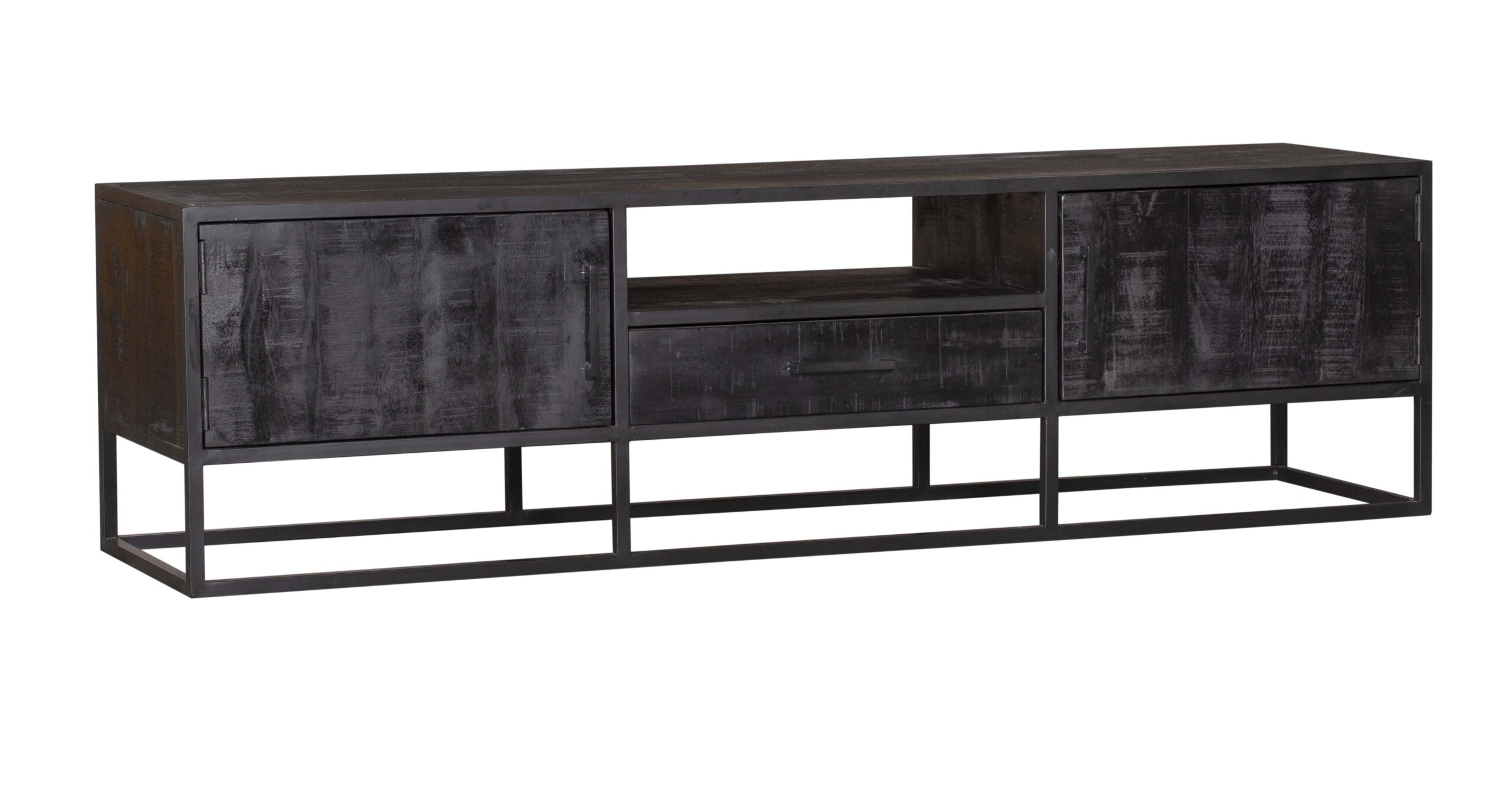- Het TV meubel is gemaakt van massief mangohout en metaal. Mangohout is een sterke en duurzame houtsoort
