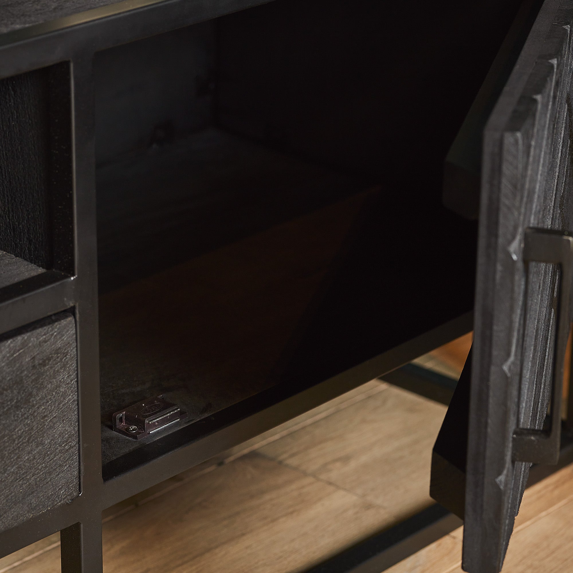 - Het meubel heeft zijn moderne uitstraling te danken aan zijn unieke vispatroon en aan zijn afwerking in zwarte lak