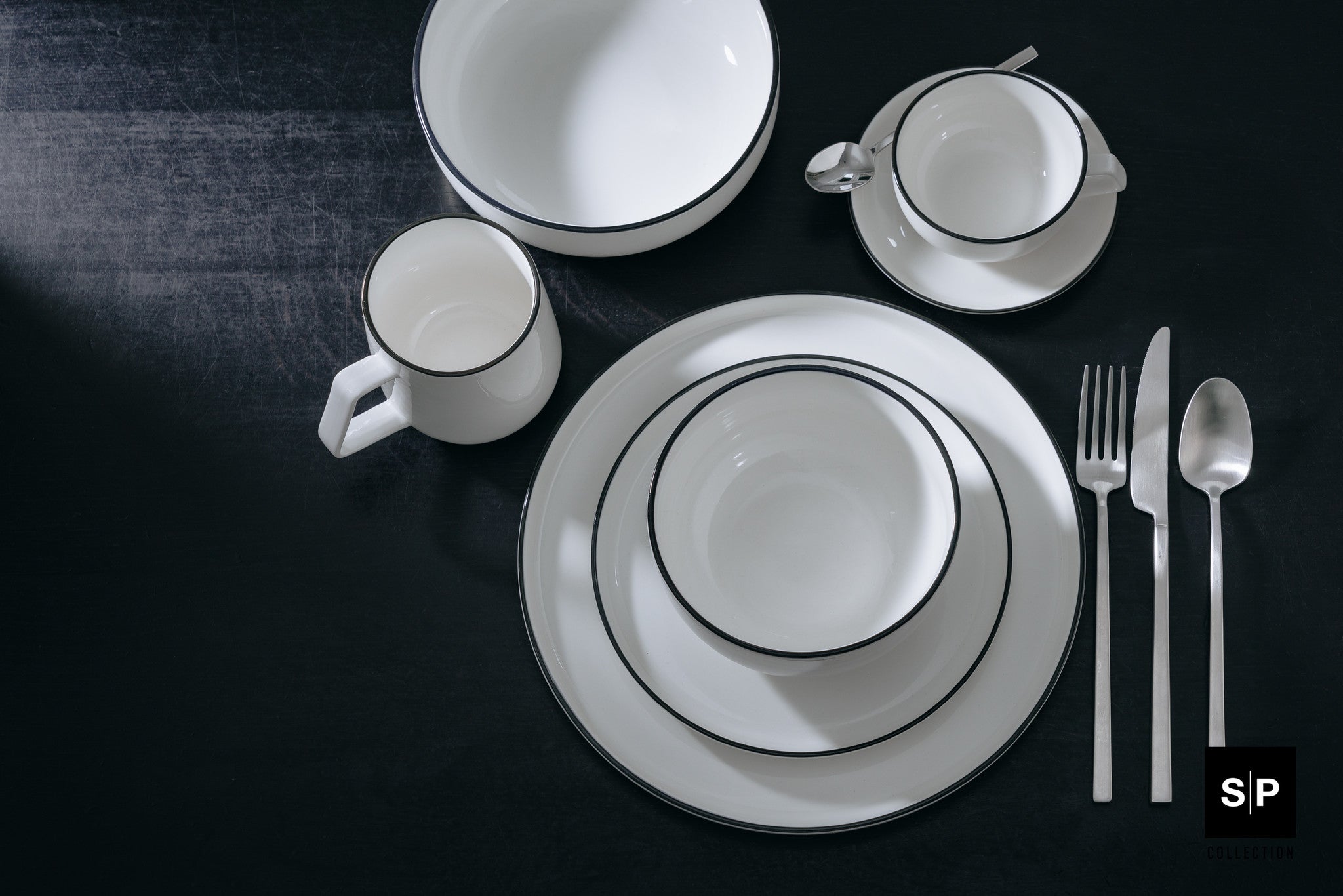 Het Studio Base servies brengt ons terug naar de basis. Deze collectie kenmerkt zich door een elegante, witte vorm gecombineerd met een zwarte rand. Door zijn moderne uitstraling en het hoogwaardige porselein is het de perfecte serie voor dagelijks gebruik maar ook voor speciale gelegenheden. Productinformatie 16-delige serviesset Kleur: wit met zwarte rand Inhoud 4x ontbijtbord / dessertbord 19 cm 4x dinerbord 26 cm 4x kom / soepkom 14 cm 4x mok 420 ml Materiaalinformatie Het Studio Base servies is gemaakt van porselein. Door de hoge baktemperaturen is porselein harder, sterker en beter bestand tegen krassen dan aardewerk. Magnetron- en vaatwasmachinebestendig