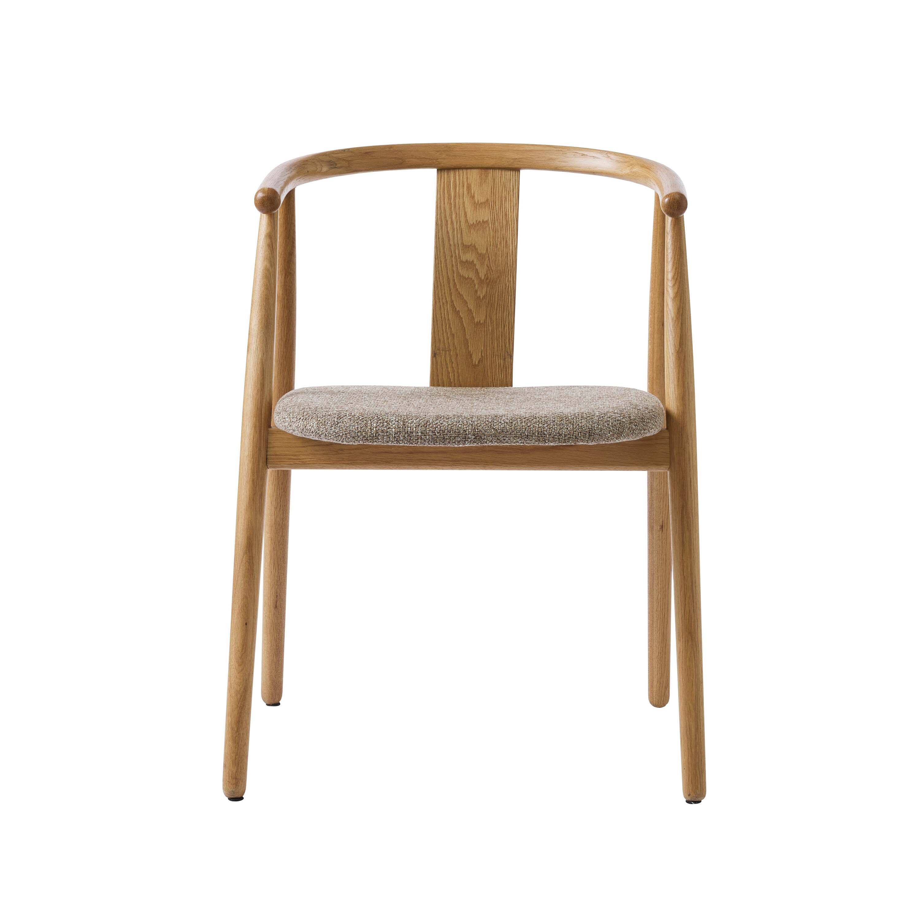 Sumatra is eenvoud in zijn meest elegante vorm. Het lichte eikenhout geeft deze stoel een warme, natuurlijke uitstraling, terwijl de afgeronde rugleuning en subtiele stoffering zorgen voor comfort zonder opsmuk. De open vorm maakt ‘m luchtig en verfijnd, perfect voor wie houdt van balans en rust in het interieur.