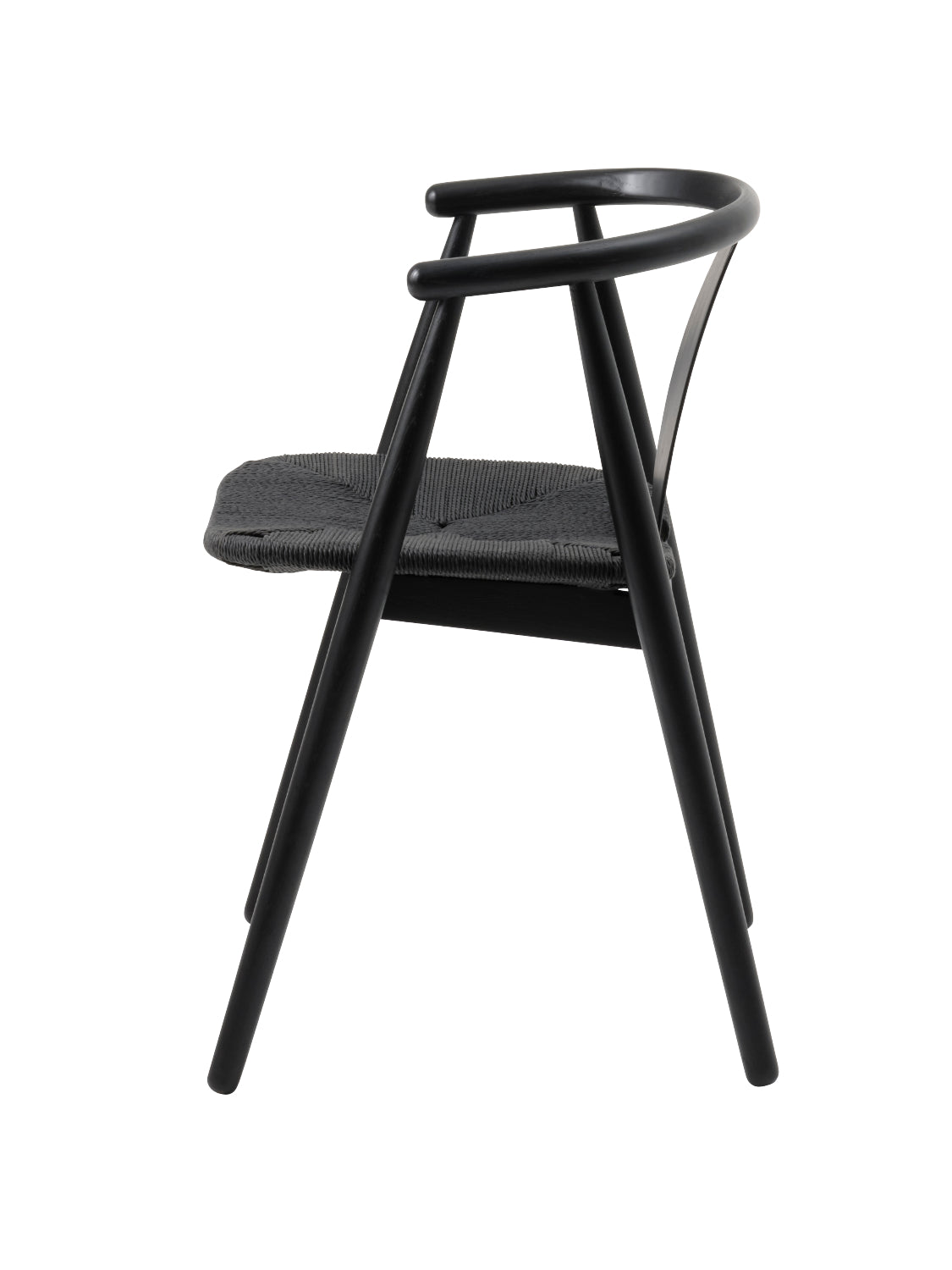 Een klassieker in een modern jasje. Sumatra in zwart met gevlochten zitting combineert ambachtelijke charme met strak design. De diepe zwarte tint geeft de stoel een krachtige, stijlvolle uitstraling, terwijl het handgevlochten zitvlak zorgt voor structuur, comfort en karakter.