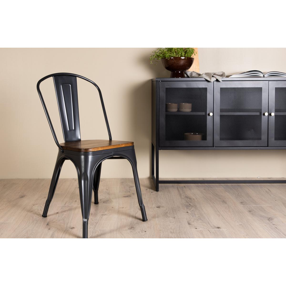 Deze eetkamerstoel Tempe is gemaakt van donkergrijs staal met een donkerhouten zitting. Het klassieke ontwerp met licht uitlopende poten zorgt voor een rustieke uitstraling, waardoor de stoel een prachtige aanvulling is op elke eetruimte. De stoel is perfect om rondom een eettafel te plaatsen en biedt de flexibiliteit om een complete eetgroep te creëren die het hart van uw huis vormt. Dit maakt het een stijlvolle en tijdloze keuze voor elke kamer. Om het beste resultaat te bereiken, wordt aanbevolen om de Tempe stoelen te combineren met een bijpassende eettafel. De combinatie van klassiek design en functionele eigenschappen maakt deze stoel een waardevolle toevoeging aan uw interieur.