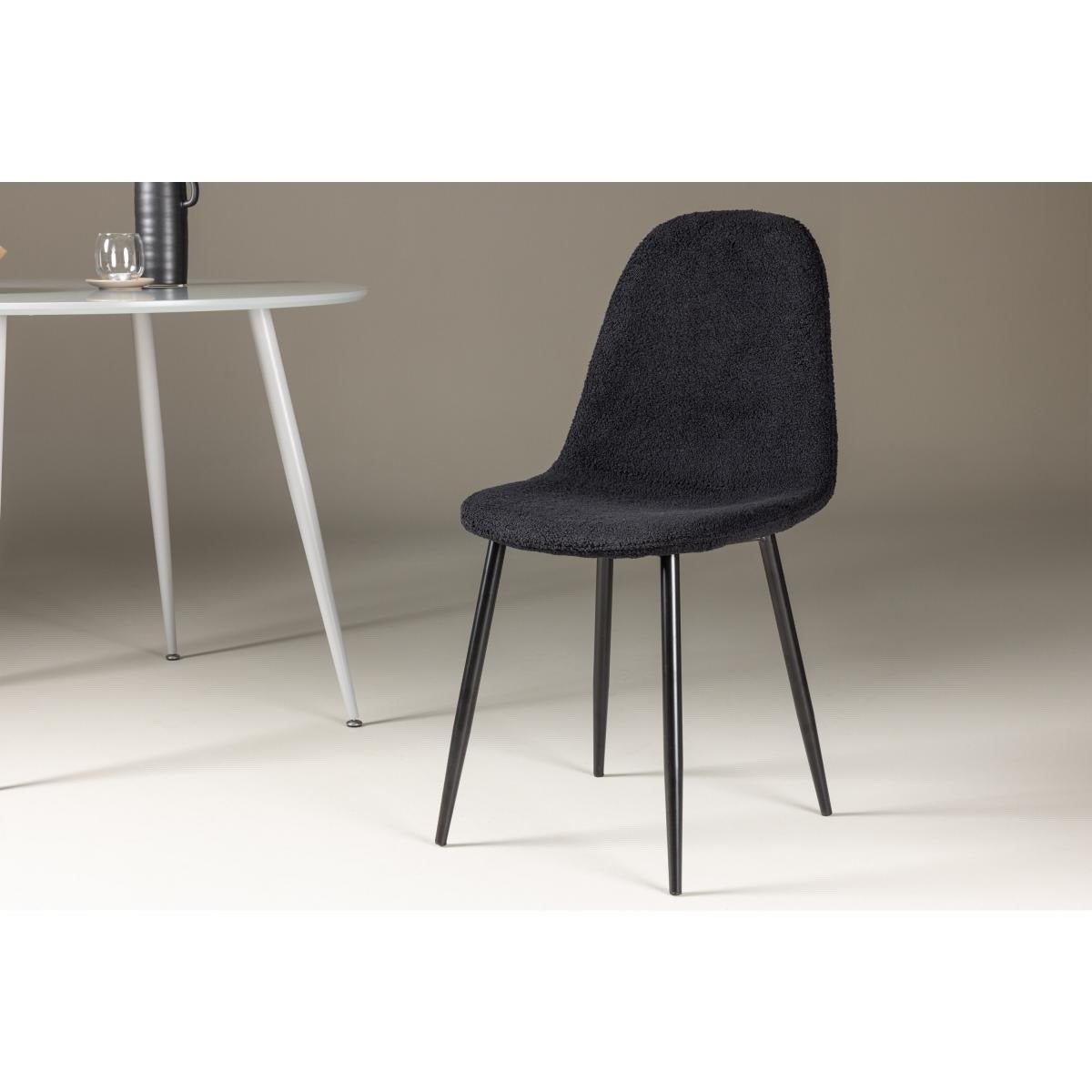 De Selo eetkamerstoel - teddy - zwart is een stijlvolle en comfortabele toevoeging aan je eetkamer. Deze stoel is bekleed met een zachte teddy stof in een elegante zwarte kleur, wat zorgt voor een warme en uitnodigende uitstraling. Het ontwerp van de Selo eetkamerstoel - teddy - zwart is modern en tijdloos, waardoor hij perfect past in diverse interieurstijlen. De stoel is voorzien van stevige poten die zorgen voor een stabiele en duurzame constructie. De Selo eetkamerstoel - teddy - zwart is niet alleen een lust voor het oog, maar biedt ook optimaal zitcomfort. Combineer meerdere stoelen rond je eettafel voor een complete en harmonieuze look, of gebruik ze als accentstoelen in andere ruimtes van je huis voor een veelzijdige en functionele inrichting.