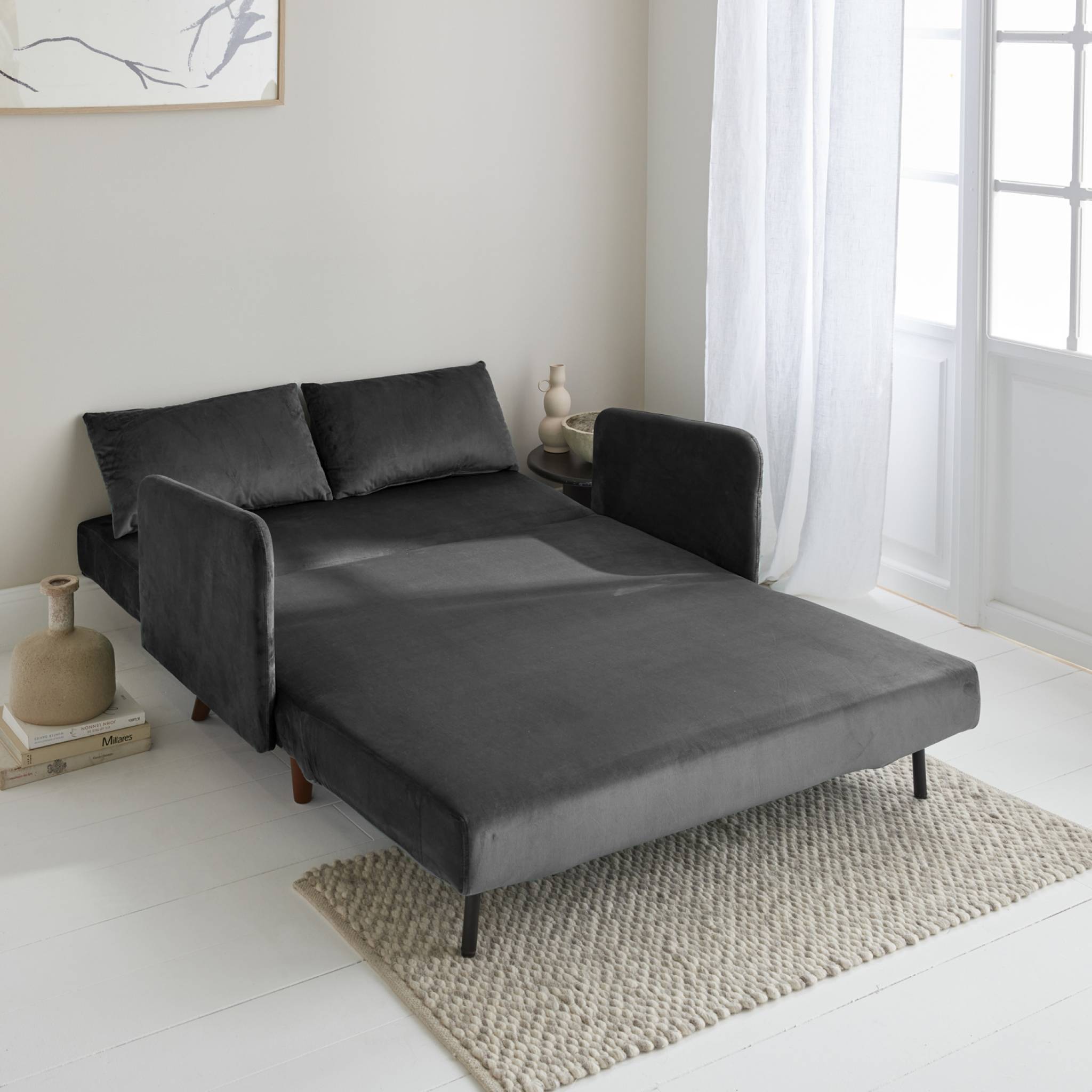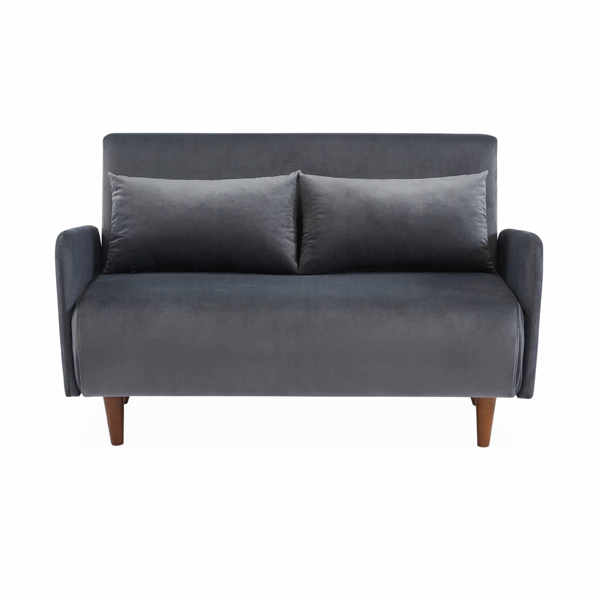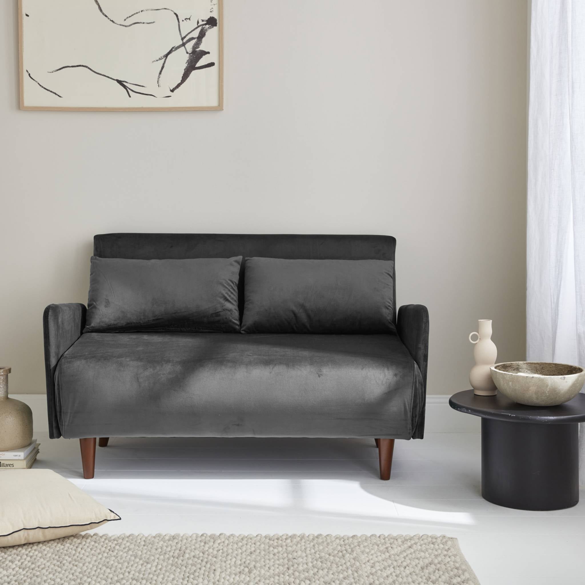 sweeek - 2-zits fluwelen slaapbank met houten poten