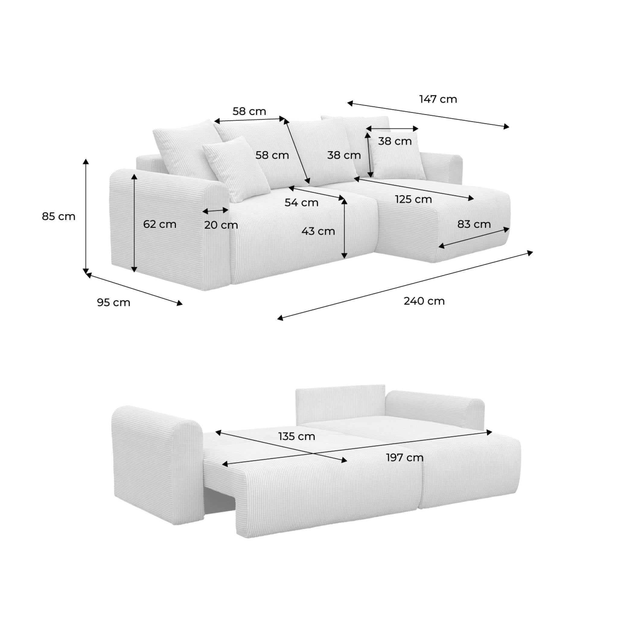 sweeek - 3-zits hoekslaapbank met omwisselbare hoek en opbergruimte in
