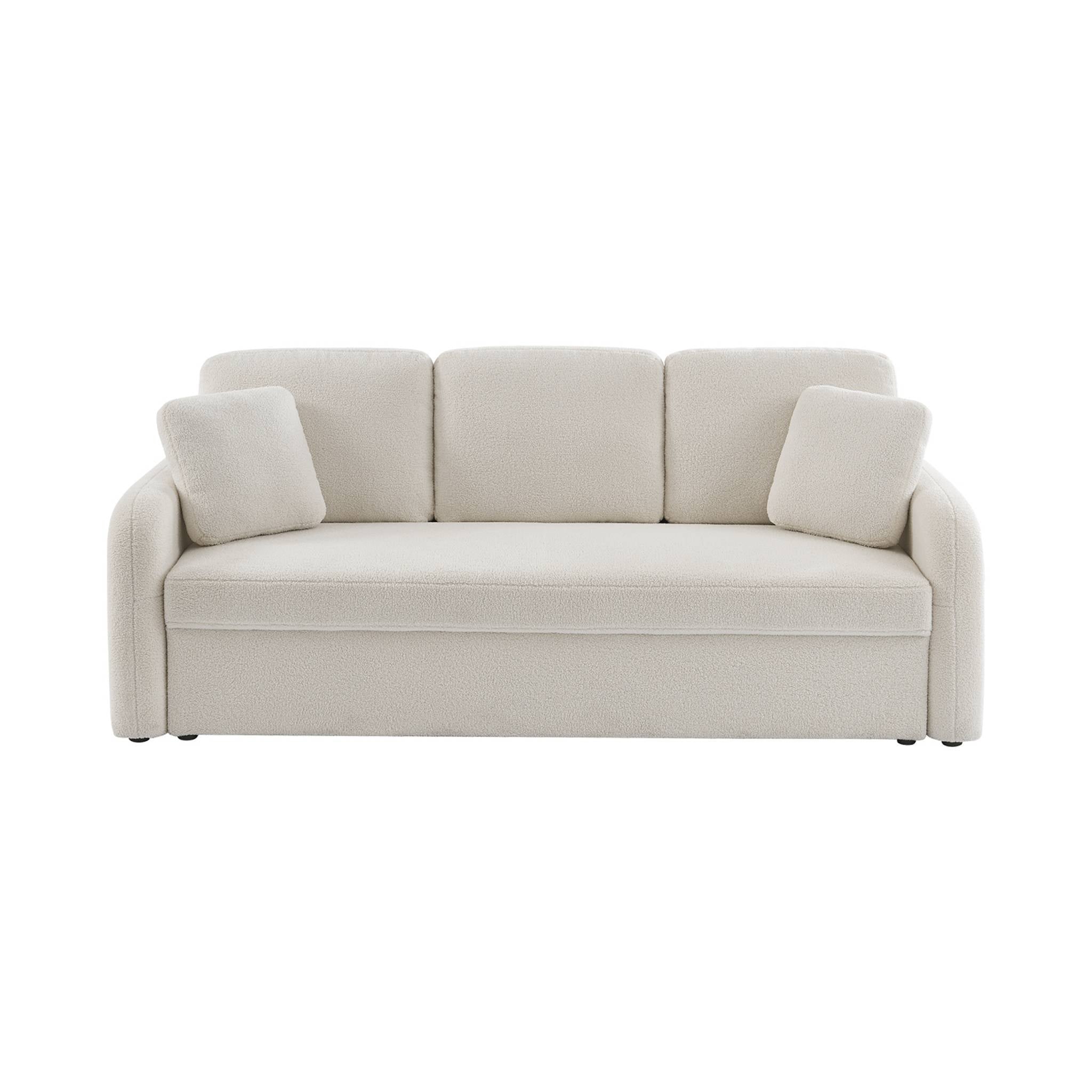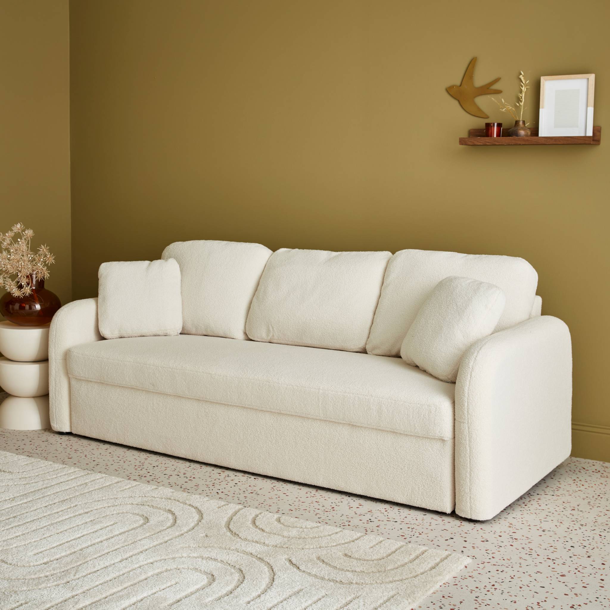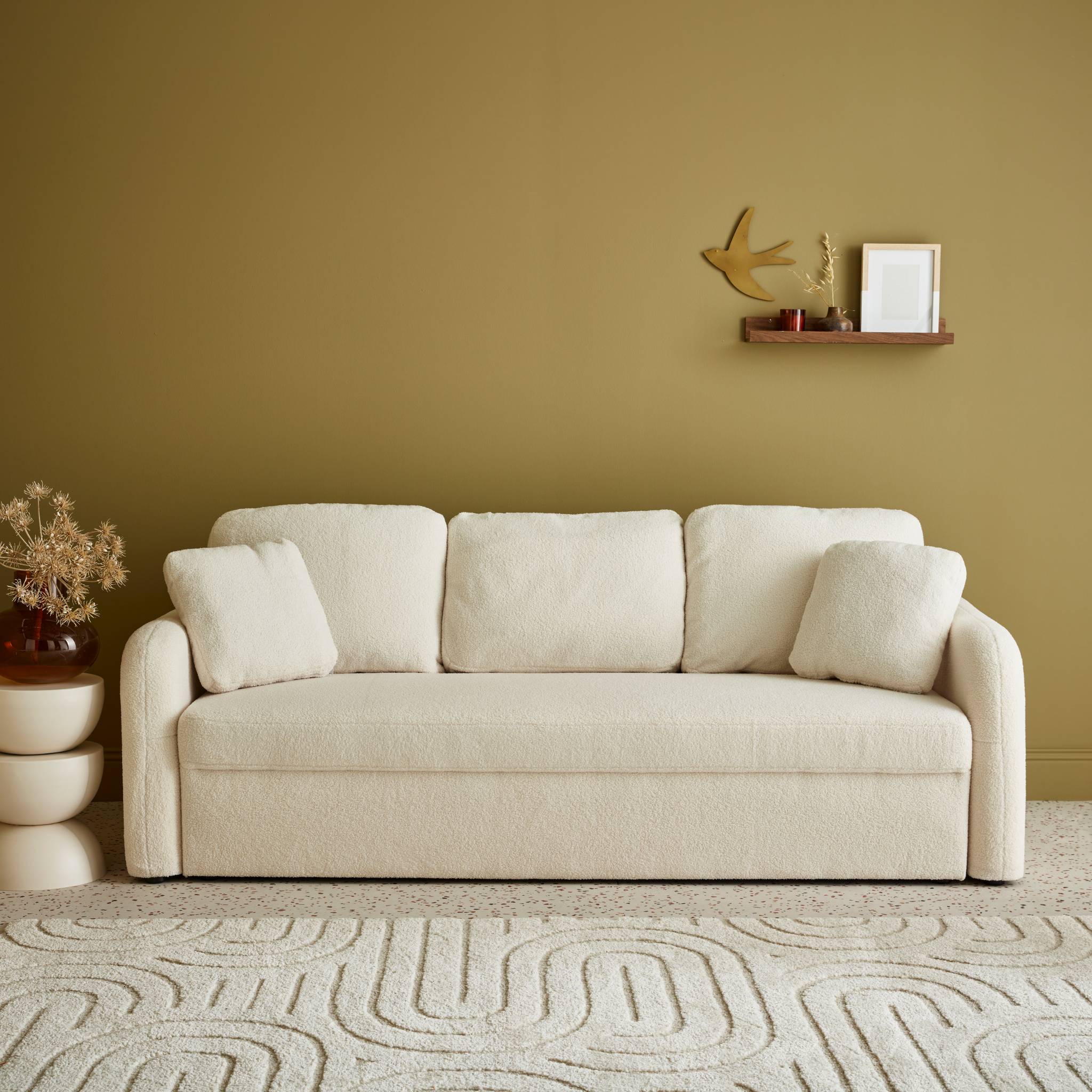 sweeek - 3-zitsbank met witte boucléstof, Milano, afgeronde lijnen