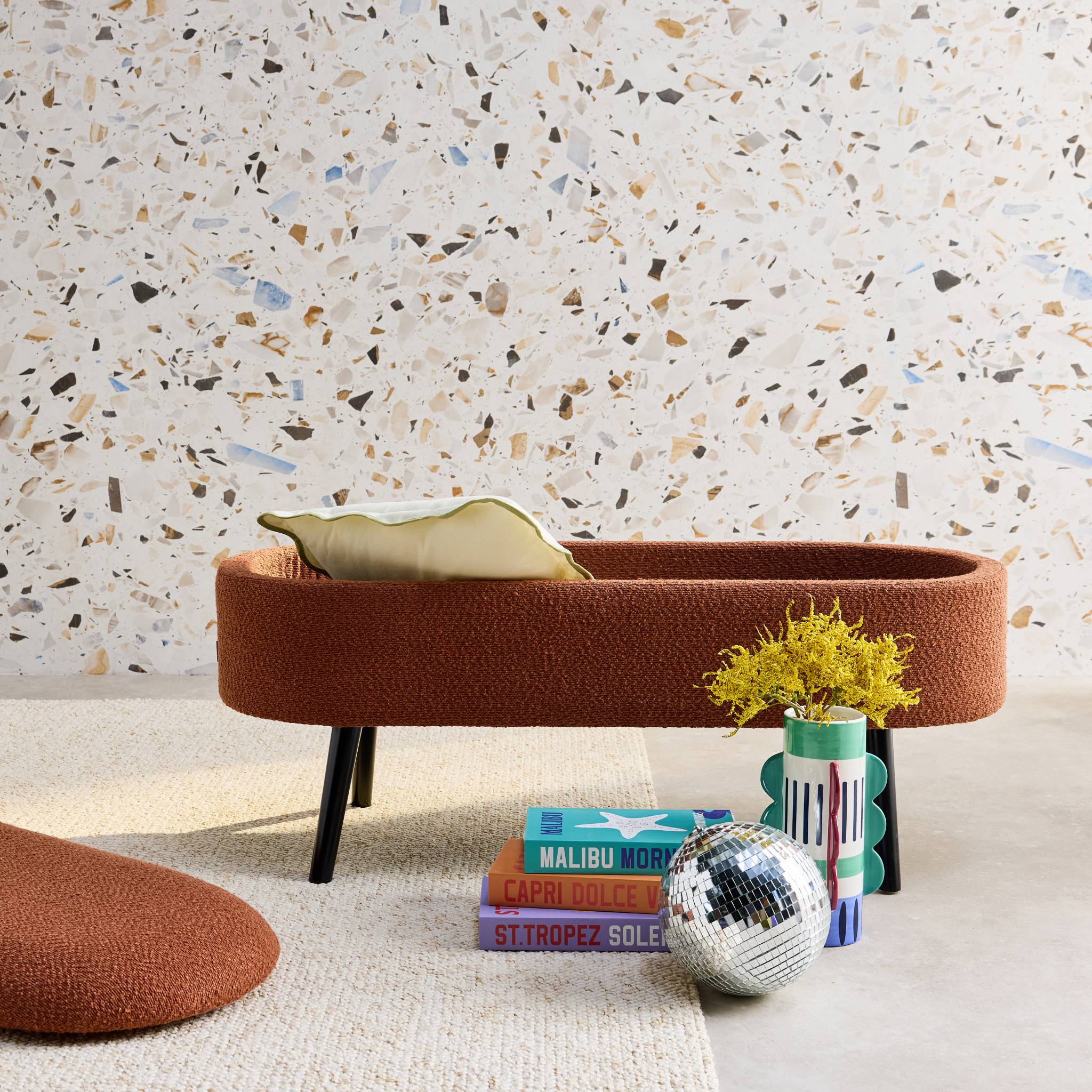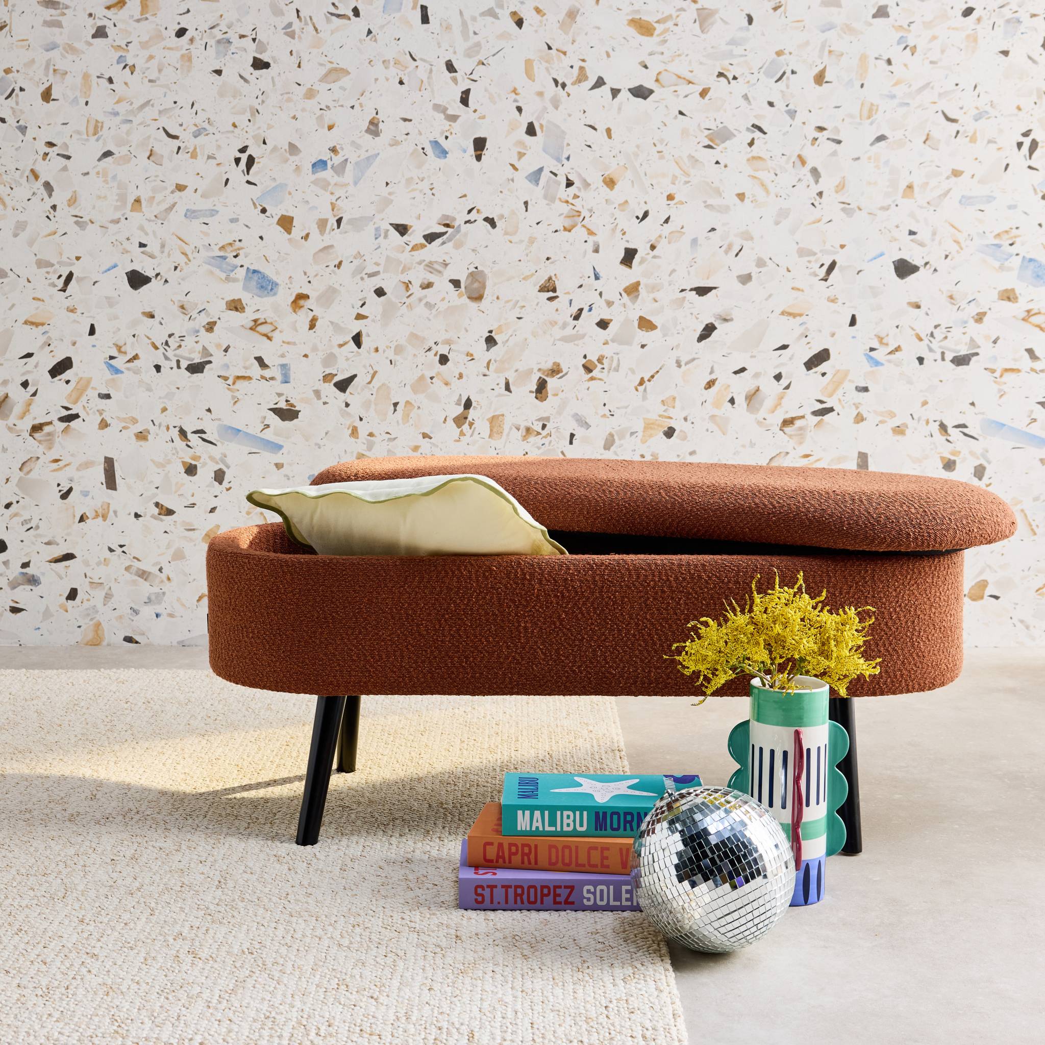 sweeek - Bank, bedeinde boucléstof, poten van zwart heveahout