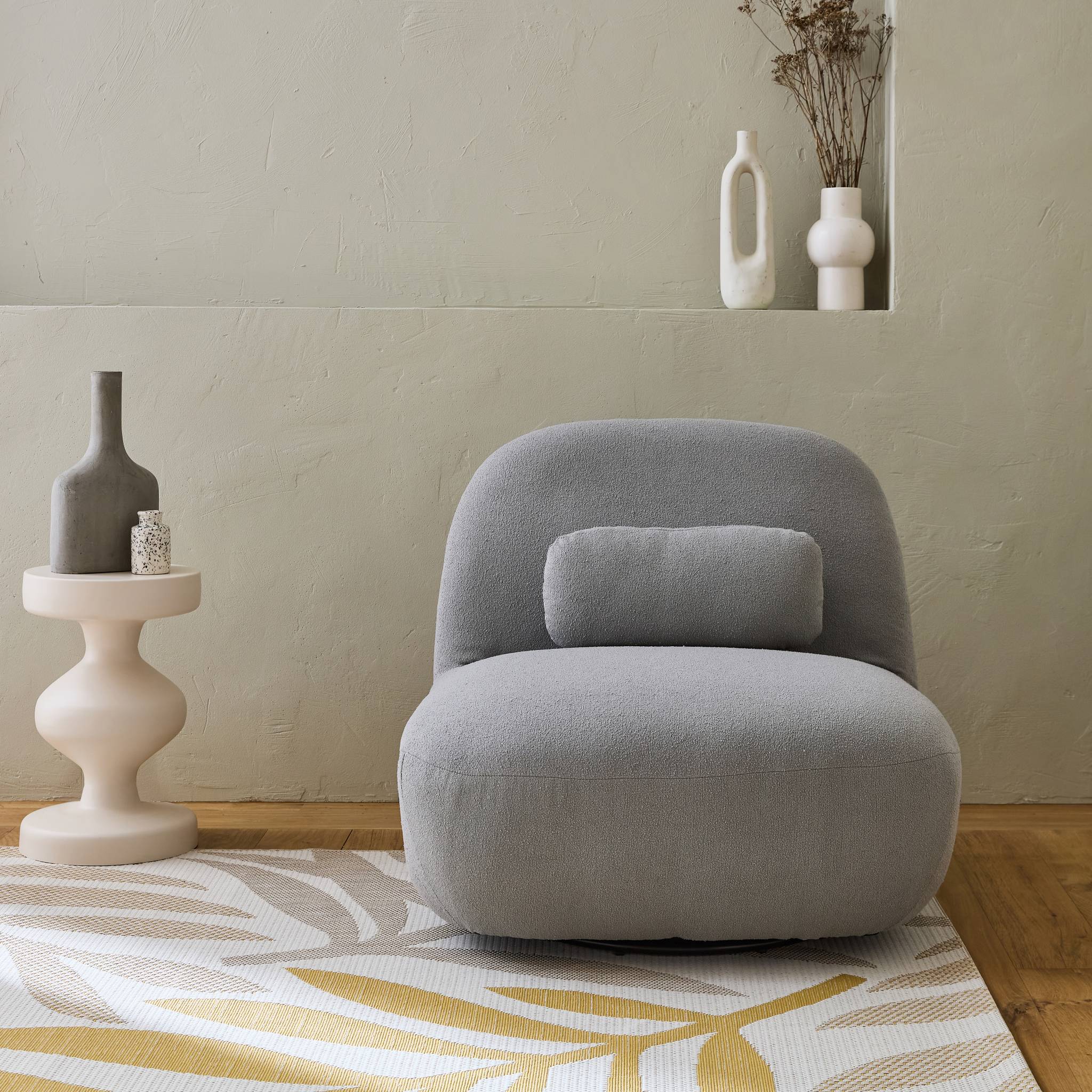 sweeek - Draaiende fauteuil 360° met gestructureerde bouclette en