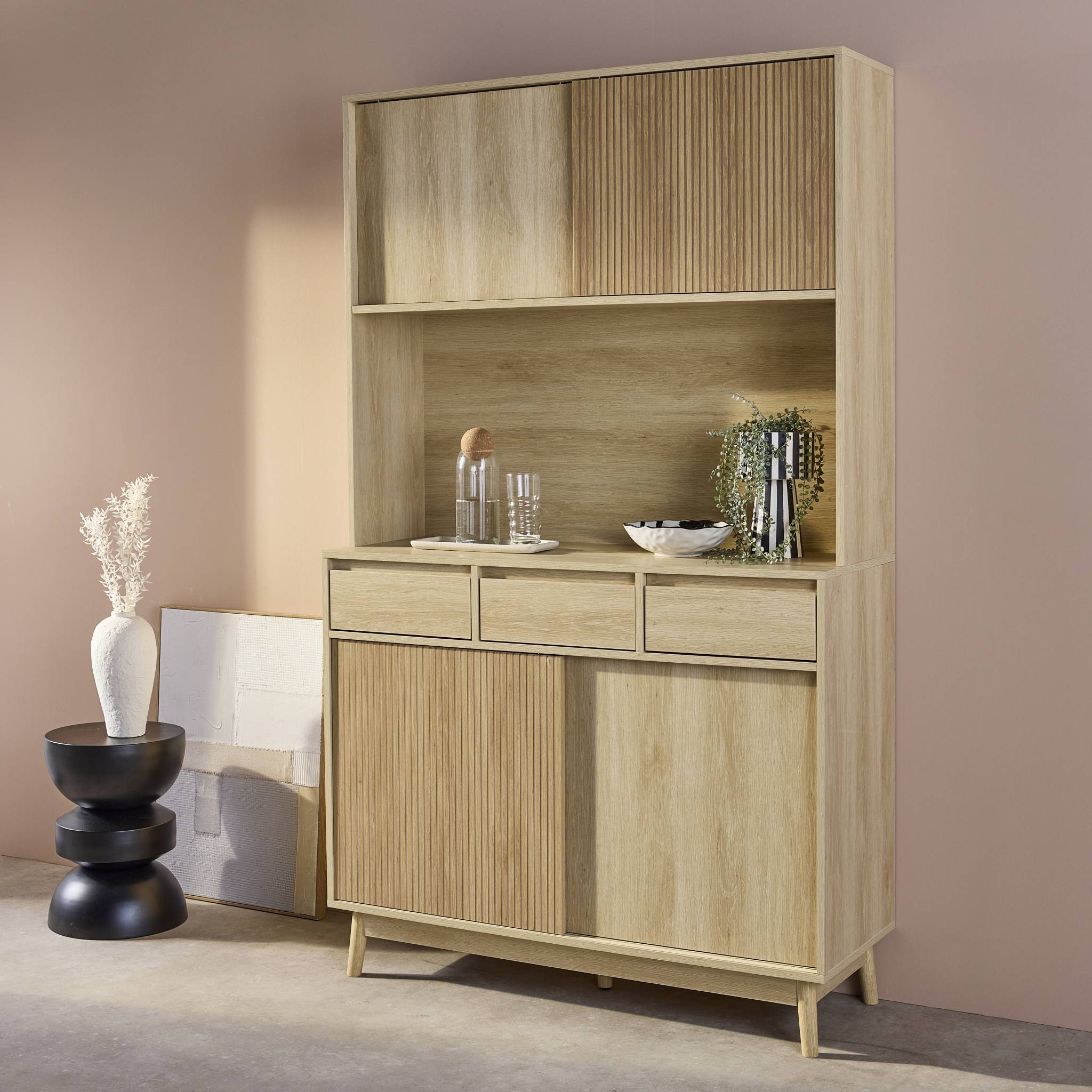sweeek - Dressoir, decor hout 4 deuren 3 lades 110 cm