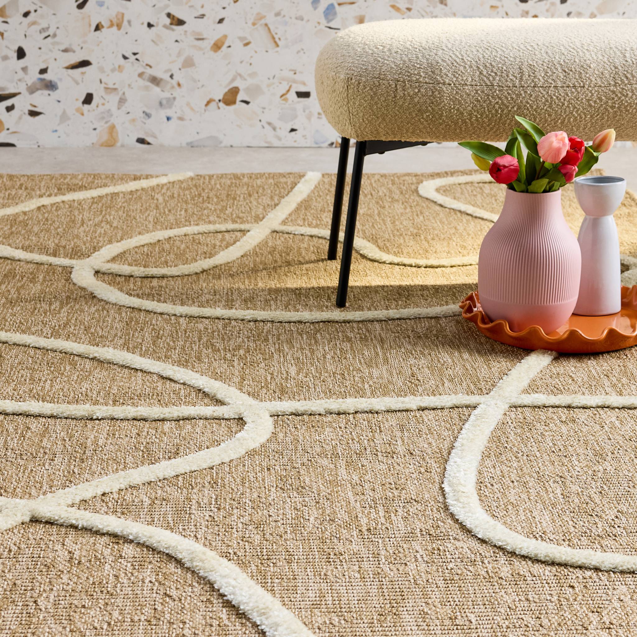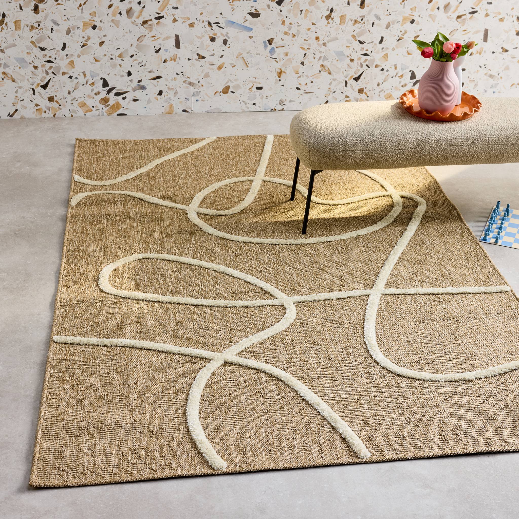sweeek - Interieurtapijt met jute-effect, reliëf grafisch patroon in